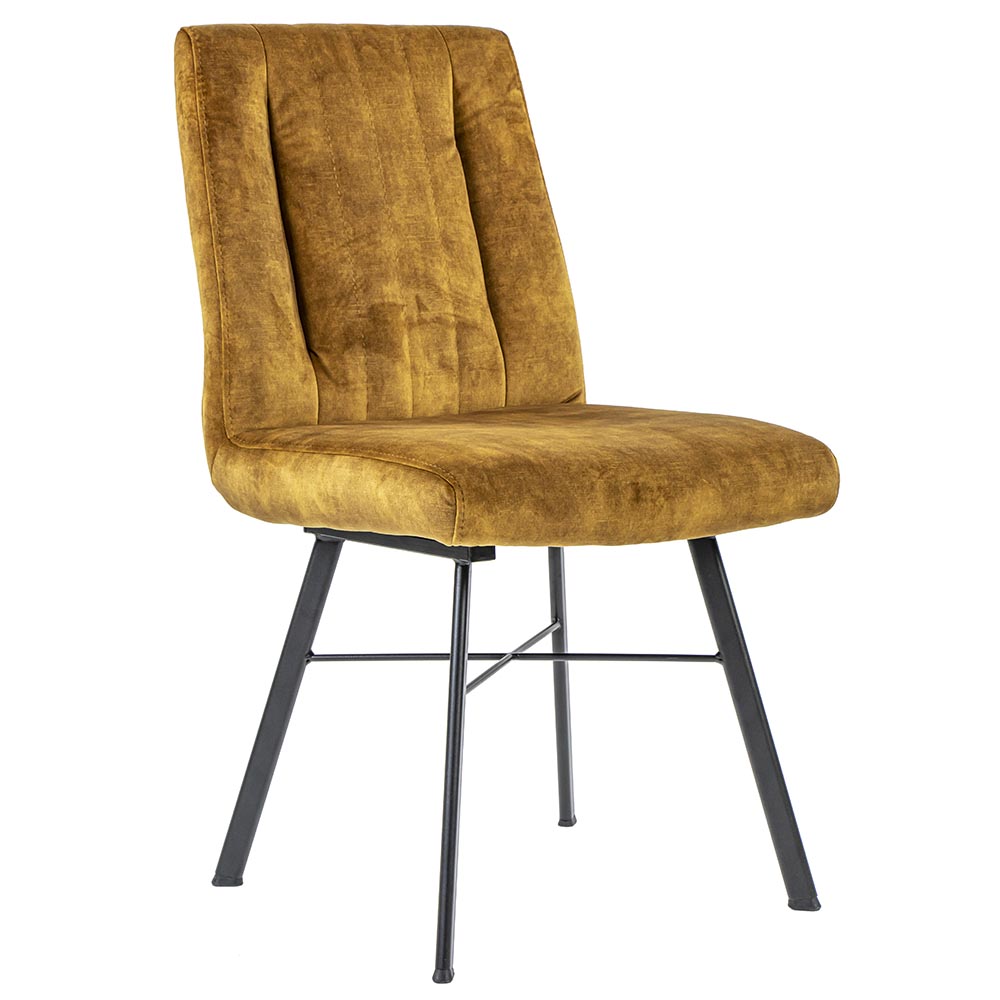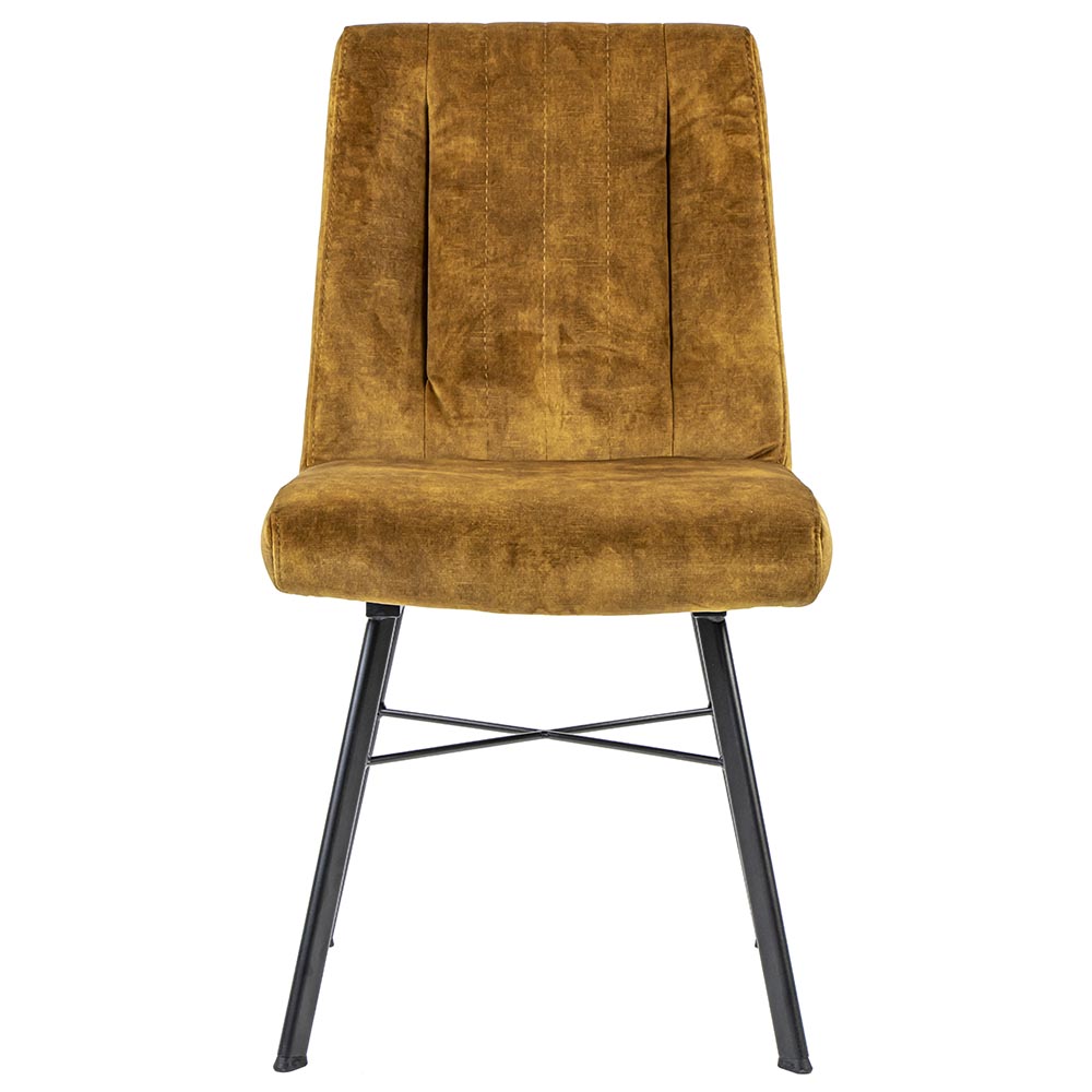 Een trendy stoel die prima geschikt is voor een landelijk of chique interieur. De stoel is voorzien van een velourse stof wat een luxe uitstraling geeft. De strak vormgegeven metalen poten maken de eetkamerstoel wat moderner en stoerder. De stoel is volledig ton sur ton waardoor stiksels niet opvallen en de zitting en leuning één geheel vormen. De rugleuning is voorzien van een aantal decoratieve stiksels die de stoel net even wat extra opleuken. Een fijne stoel met een hoog zitcomfort zodat tafelen en natafelen een waar genot wordt.