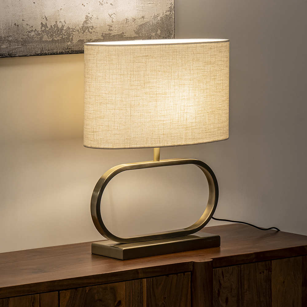 Modern en klassiek in één. Jamiro is in diverse woonstijlen toe te passen. De stijlvolle lampvoet met een licht gouden gloed kan met diverse kleuren kappen worden gecombineerd om zo de juiste stijl te creëren. De moderne tafellamp past gemakkelijk op een dressoir, kast of bijzettafel. Het ovale frame geeft de tafellamp een chic randje. De lampvoet is voorzien van een snoer van 150 cm en wordt geleverd exclusief kap en lichtbron.