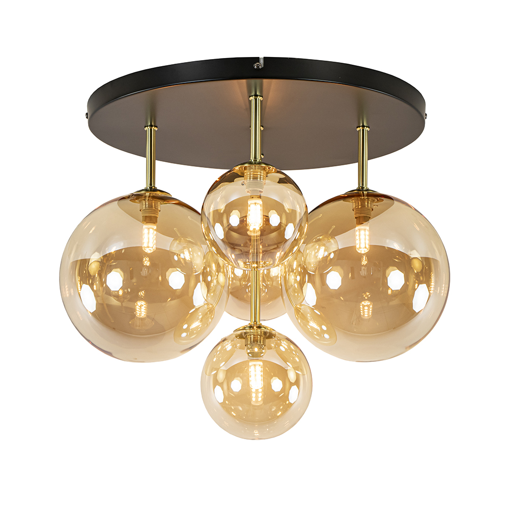 Chique plafondlamp 5-lichts amber glas rond