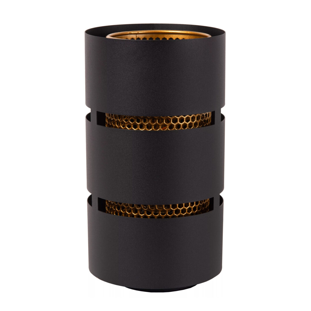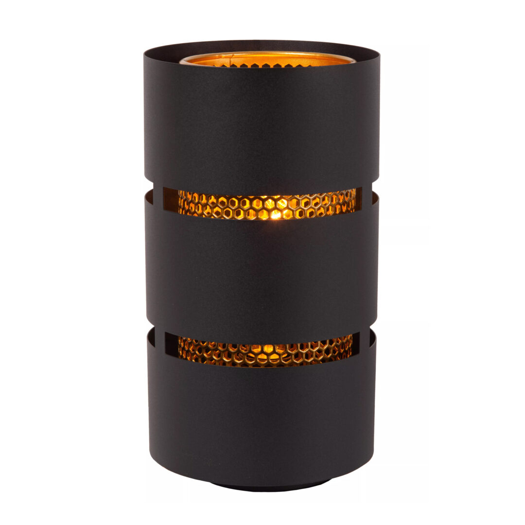 Een stoere tafellamp die z’n inspiratie vind in de natuur. De binnenste kap is namelijk geïnspireerd op de binnenzijde van een bijenkorf. Dit is dan ook uitgevoerd in het goud zodat de lamp een warme gloed afgeeft aan het interieur. De cilinder tafellamp is volledig gemaakt van metaal en heeft een mat zwarte buitenkap. De combinatie van het zwart en goud maakt de lamp prima geschikt voor diverse woonstijlen. De tafellamp is een sfeervolle toevoeging op een kast, dressoir of zelfs het nachtkastje en is voorzien van een zwart snoer met een lengte van 180 cm.