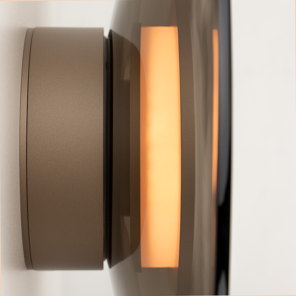 Wandlamp Dark Amber Night, uitgevoerd in een zand kleur met donker amberkleurig glas, gecombineerd moderne technologie en tijdloze elegantie. De warmwitte LED-lamp zorgt voor prachtig, sfeervol licht waarbij u door middel van een externe dimmer traploos de helderheid kunt regelen en zo aanpassen aan uw persoonlijke wensen. De wandlamp komt door zijn strakke design goed tot zijn recht in een modern strak interieur, maar is in diverse woonstijlen mooi te combineren.