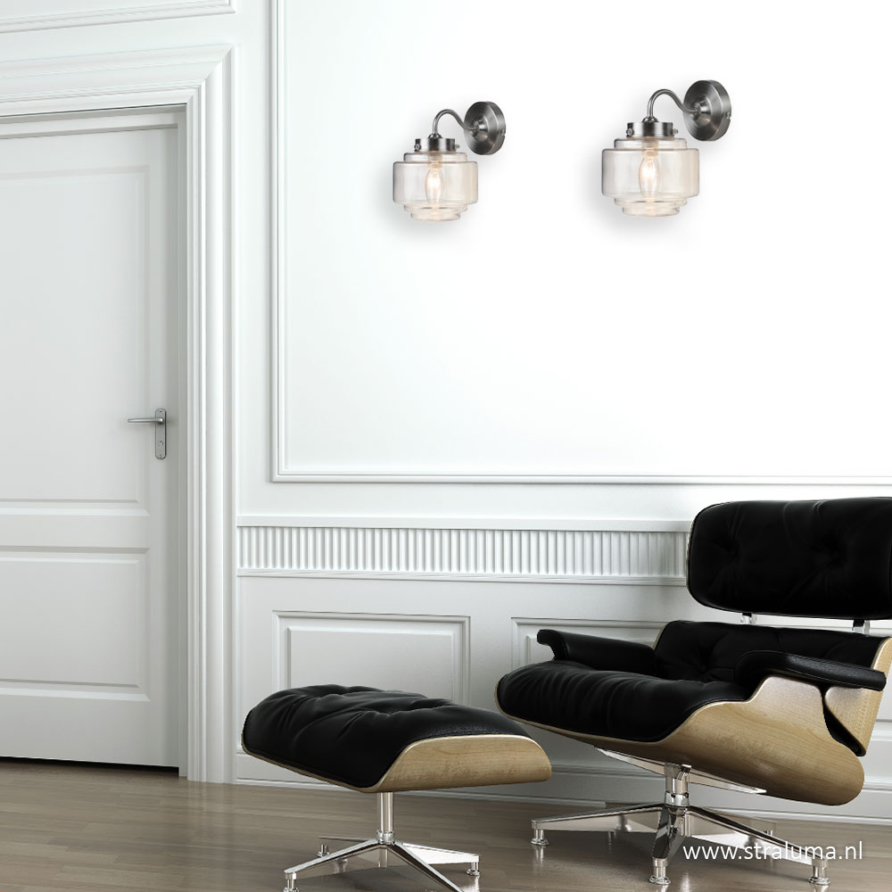 / Lampen / Wandlampen / Deco wandlamp staal met helder glas