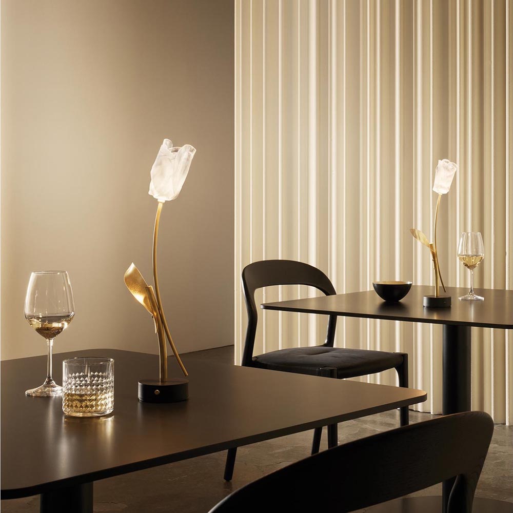Deze design LED lamp is een sfeervolle en decoratieve toevoeging aan het interieur. De LED tafellamp heeft de vorm van een tulp en is draadloos te gebruiken. De tulp tafellamp werk op batterij en kan worden opgeladen dmv een meegeleverde USB kabel. De tafellamp op batterij is dan ook overal neer te zetten en gemakkelijk te bedienen dmv de touchknop op de voet. Zet de lamp snel aan of uit en dim naar de gewenste intensiteit door de dimmer ingedrukt te houden. Ideaal voor op een bijzettafel, nachtkastje of in een kast. Doordat de knoppen van de tulp met de hand worden gevouwen is iedere tulp uniek.