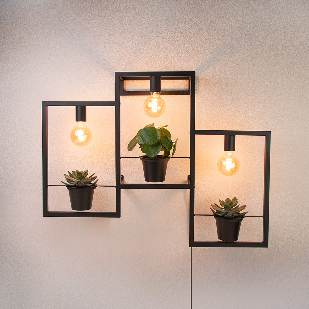Naast verlichting zorgt deze wandlamp ook voor wat groen in huis doormiddel van de meegeleverde plantenpotjes. Het metalen frame wordt gemakkelijk aan de wand bevestigd en is voorzien van een snoer en een knipschakelaar. Ideaal voor in een hal, woonkamer of zelfs de slaapkamer. Deze mooie wandlamp is mooi toe te pasen in een botanische, industriële of landelijke woonstijl.
