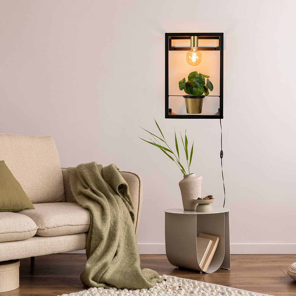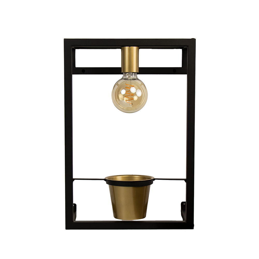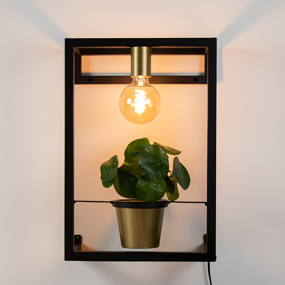 Decoratieve wandlamp met plantenpot – zwart/goud