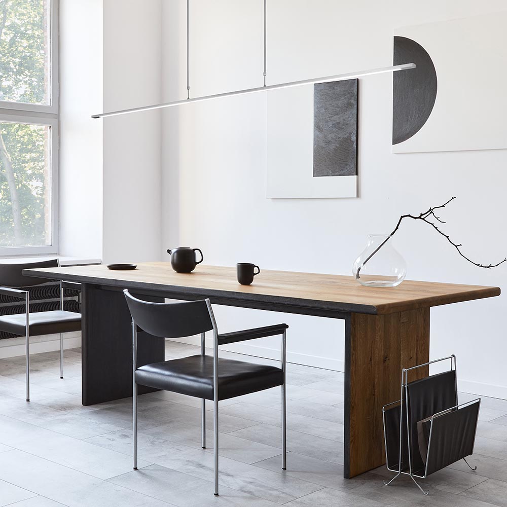 Deze prachtige hanglamp is een mooie toevoeging voor de eetkamer of het kantoor. De lamp heeft een strak en slank design dat mooi past in diverse woonstijlen, van strak klassiek, luxury tot modern. De hanglamp is vervaardigd uit aluminium. De langwerpige balk is voorzien van LED verlichting aan de onderzijde wat door middel van de dimmer op het armatuur dimbaar is. De dim to warm functie zorgt voor extra sfeer tijdens het natafelen en borrelen. Het armatuur is in hoogte te verstellen tussen de 75 en 145 cm.