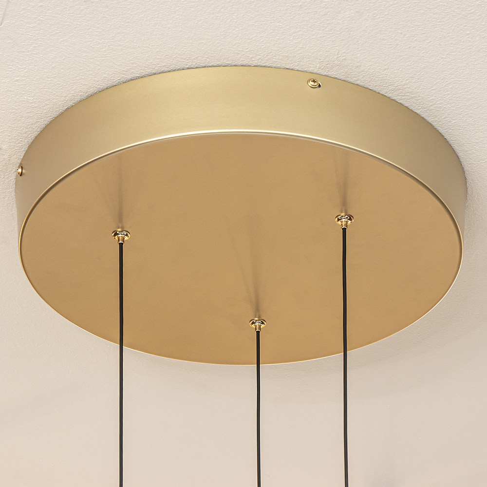 – afm: 143x107x150 cm – bevestiging: Ø35,5×6 cm – ring 1: Ø80×5 cm – ring 2: Ø60×5 cm – ring 3: Ø40×5 cm – metaal – geborsteld goud – kristal effect – inclusief LED – 2700 Kelvin – 6000 lumen – dimbaar (exclusief) – in hoogte verstelbaar