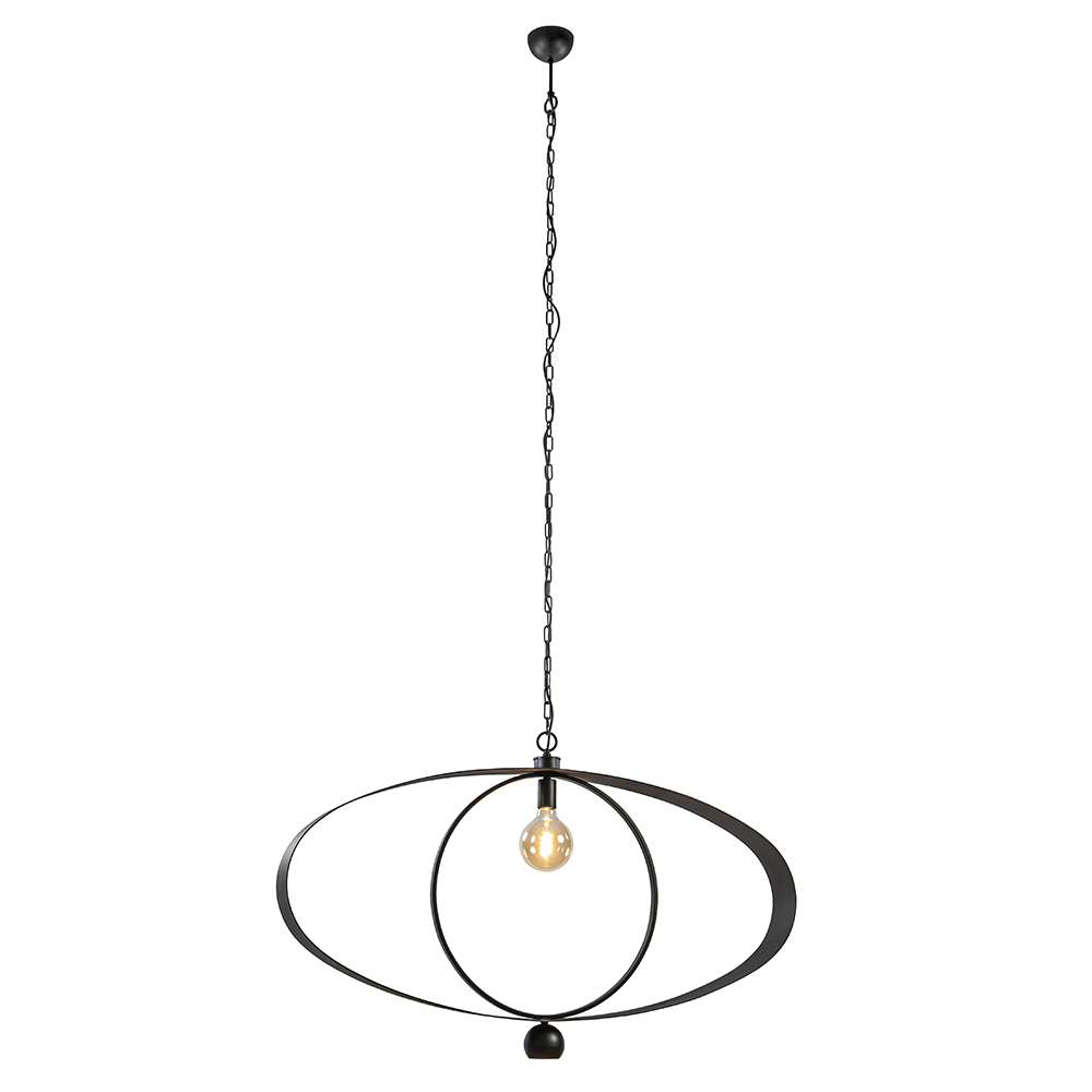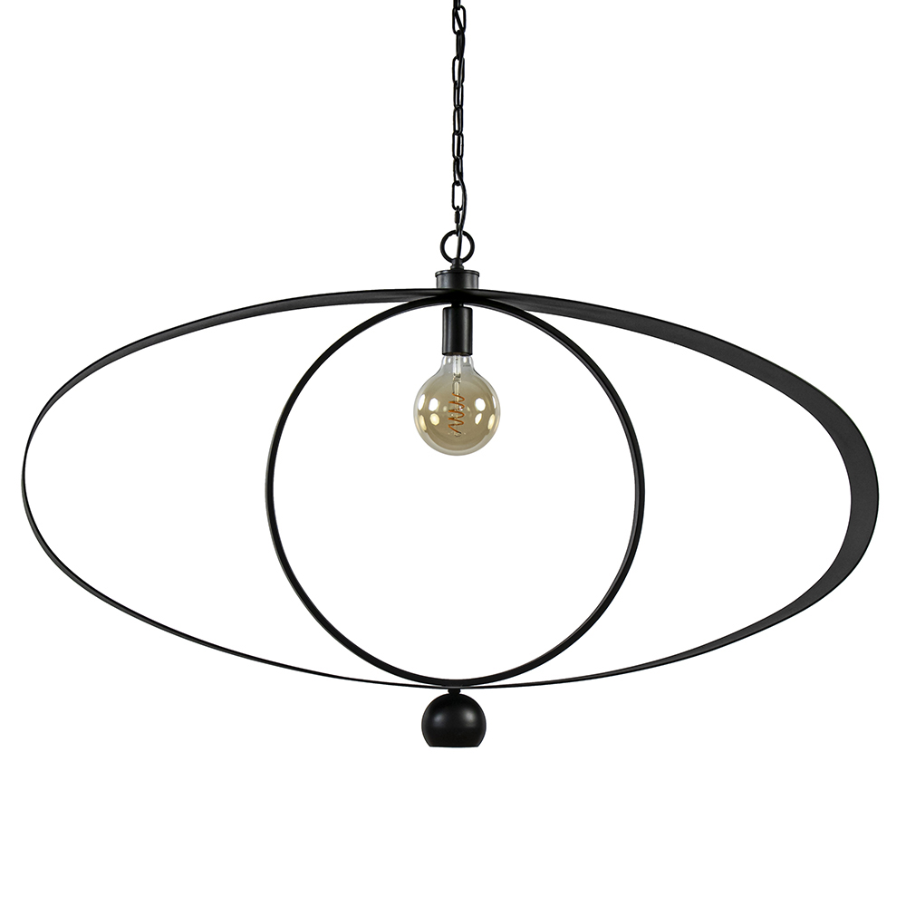 Deze stoere hanglamp met een robuuste uitstraling is een mooie toevoeging aan de eetkamer. De ovale hanglamp is volledig gemaakt van metaal en uitgevoerd in het textured zwart. Dit maakt de grote hanglamp prima geschikt voor diverse interieurstijlen. De ovale kap is voorzien van een E27 fitting waar een mooie decoratieve lichtbron zorgt voor diffuus sfeerlicht en een GU10 spot aan de onderzijde die het oppervlak onder de lamp goed voorziet van functioneel licht. Ook is de spot aparte aan en uit te zetten door middel van een aparte schakelaar op het armatuur. De hanglamp heeft een hoogte van 250 cm en zou ook kunnen worden toegepast in een ruimte met een hoog plafond of een vide. De design hanglamp zwart wordt geleverd zonder lichtbronnen.