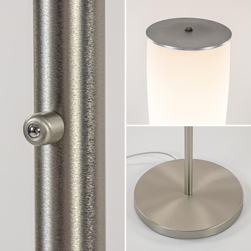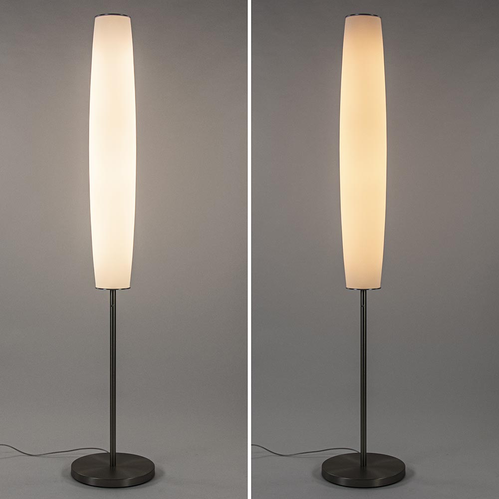 Deze luxe vloerlamp is een mooie toevoeging aan het interieur. De vloerlamp heeft een nikkel armatuur dat is gecombineerd met een cilindervormige opaal glazen kap. Het opale glas zorgt ervoor dat u niet in de lichtbron kunt kijken maar dat deze wel voldoende licht opbrengt. De zuil vloerlamp is voorzien van LED en zorgt voor een fijne sfeervolle verlichting. Daarnaast heeft deze moderne vloerlamp ook nog een andere functie, namelijk een dim to warm functie. Dit houdt in dat de lamp kan dimmen in kleurtemperatuur. Deze varieert tussen de 2200 en 2700 Kelvin. Dit werkt gemakkelijk door de dimmer op het armatuur ingedrukt te houden. Houdt u de dimmer langer ingedrukt, dan dimt de lamp ook in intensiteit. De design lamp is een mooie eyecatcher die zorgt voor een sfeervolle verlichting.