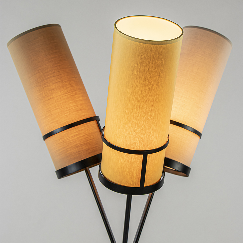 – afm: Ø58×158 cm – voet: Ø34×3 cm – kappen: Ø14×34 cm – metaal, mat zwart – meerkleurige kappen – zwart snoer: 175 cm – exclusief lichtbron (3x E27)