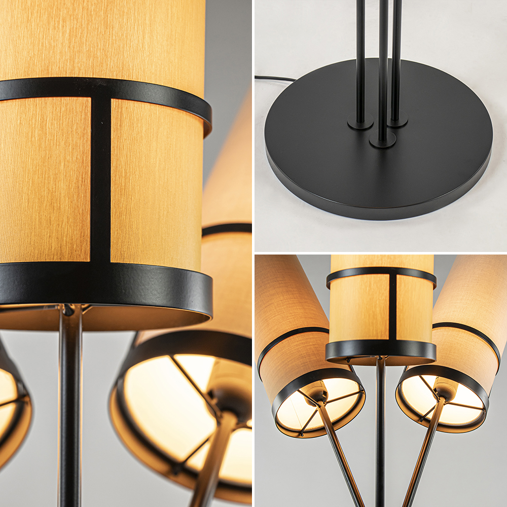Een mooie design vloerlamp met een strakke look. De staande lamp heeft een mat zwart metalen armatuur dat is gecombineerd met gekleurde kappen. Deze kunt u zelf plaatsen waar u wilt zodat de lamp toch een beetje eigen wordt. De luxe vloerlamp is voorzien van een zwart snoer met een schakelaar en heeft een lengte van 175 cm. De lichtbronnen zijn exclusief.