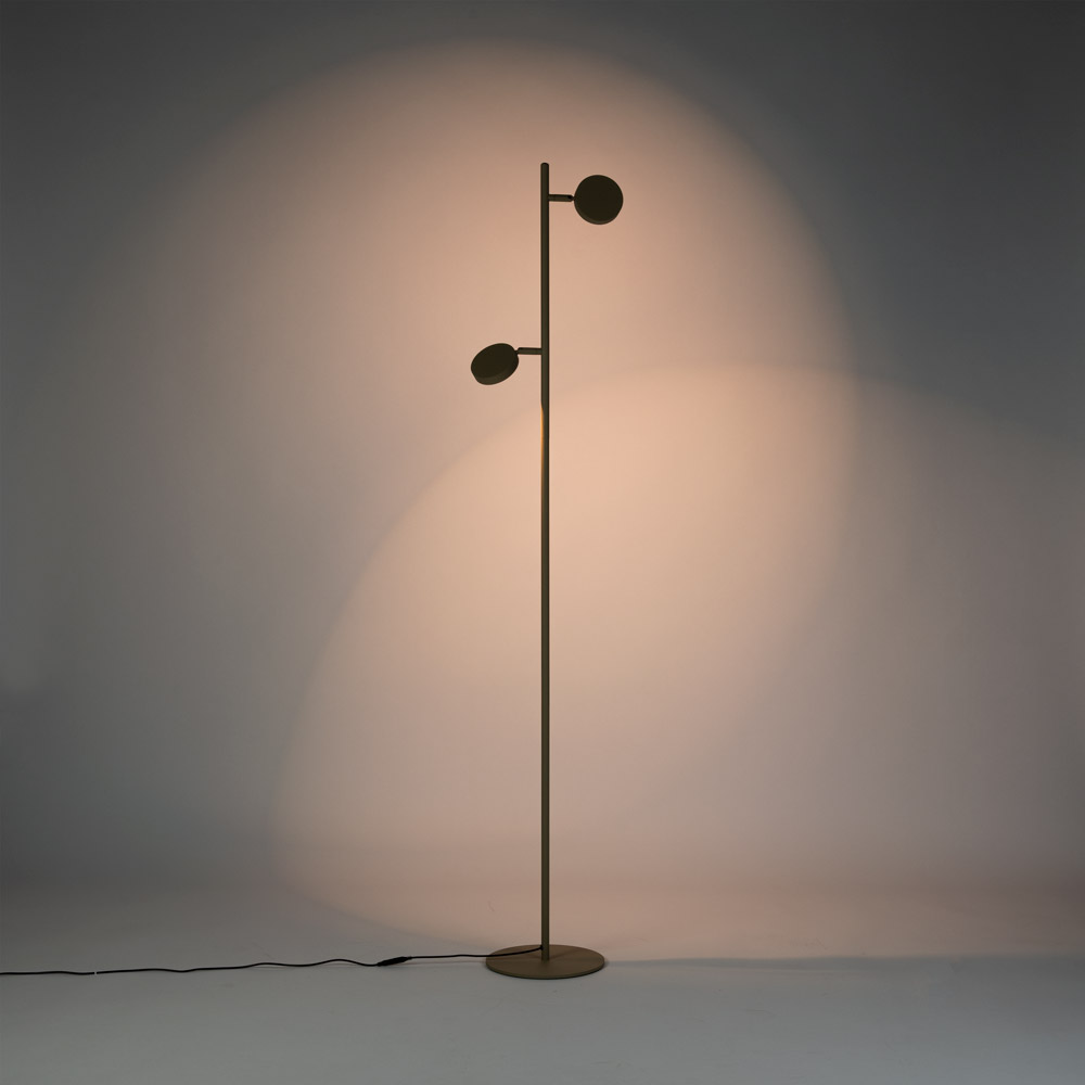 • Producttype: Vloerlamp • Lichtpunten: 2 • Kleuren: Anodic brown, zand, zwart • Afmetingen lamp: H 150 × Ø 23 cm • Voet: H 1 × Ø 23 cm • Lichtkop: H 3,5 × Ø 9 cm • Materiaal: Metaal • Lichtbron: Geïntegreerde LED (niet vervangbaar) • Vermogen: 2 × 9W • Lichtopbrengst: 1189 lumen • Lichtkleur: 2700K (warm wit) • Dimbaar: Ja, via touchdimmer op de lamp