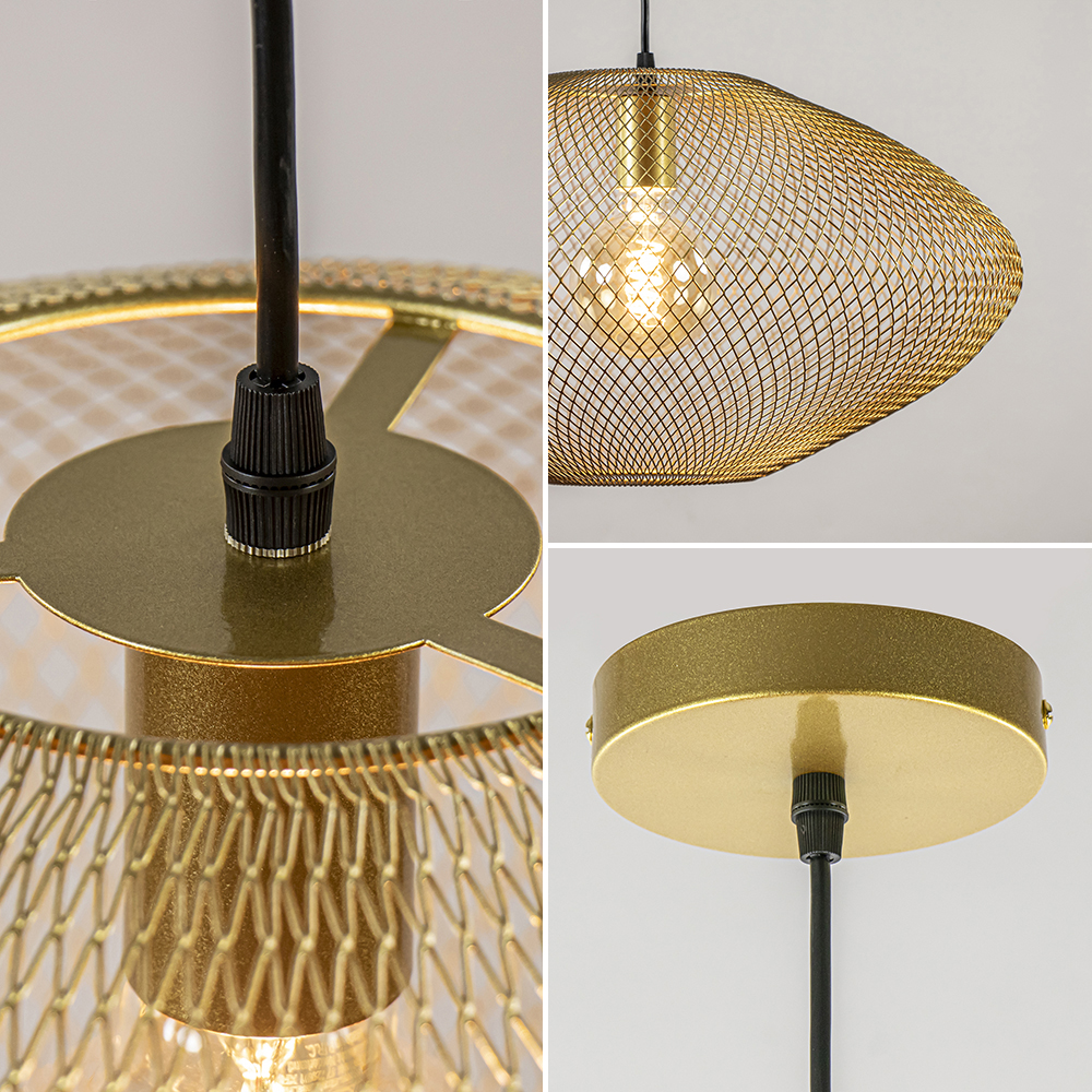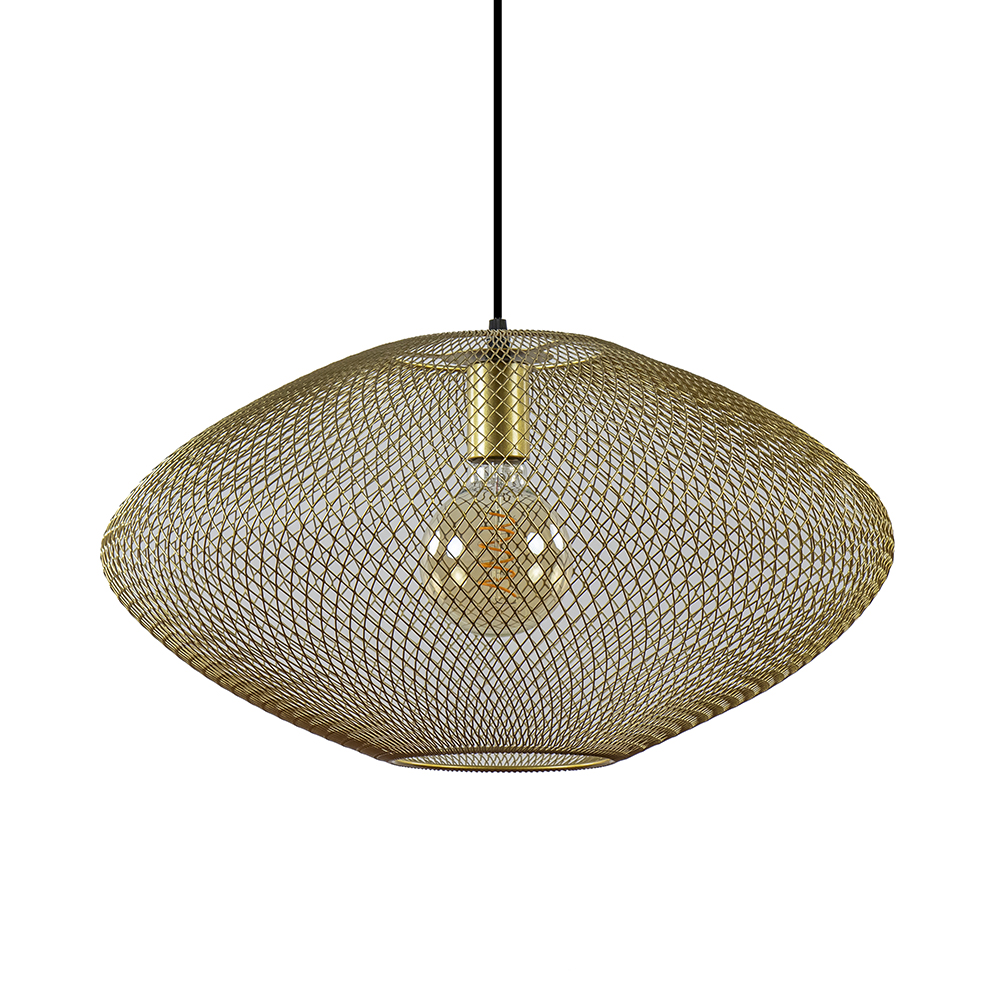 Deze trendy draad hanglamp is een mooie toevoeging aan het interieur. De ronde hanglamp heeft een doorsnede van wel 50 cm en is daardoor prima geschikt voor boven een ronde eettafel. De hanglamp is volledig gemaakt van metaal en uitgevoerd in het goud. Door de open constructie is de lichtbron mede bepalend voor de sfeer van de lamp. De gouden draadlamp is dimbaar middels een externe dimmer.