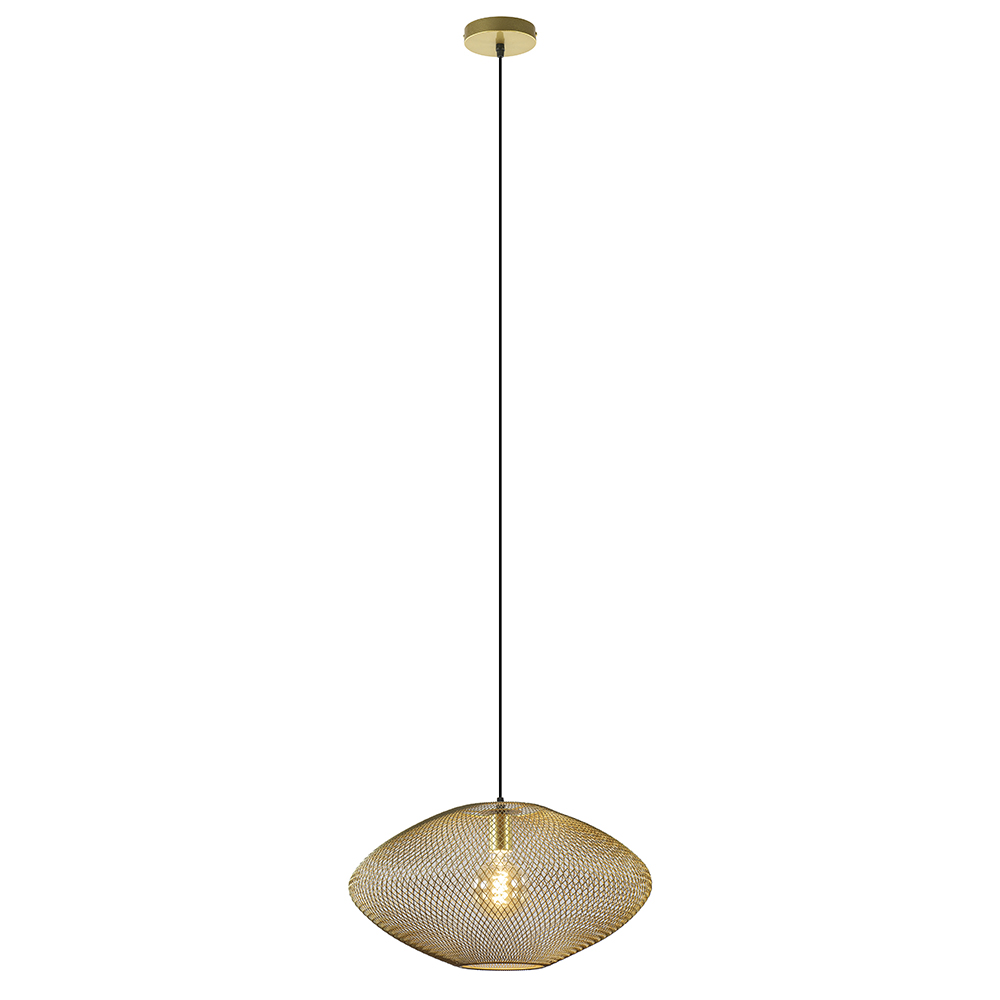 – afm: Ø50×160 cm – bevestiging: Ø12×2,5 cm – kap: Ø50×26 cm – metaal – goud – exclusief lichtbron (E27) – dimbaar (exclusief)