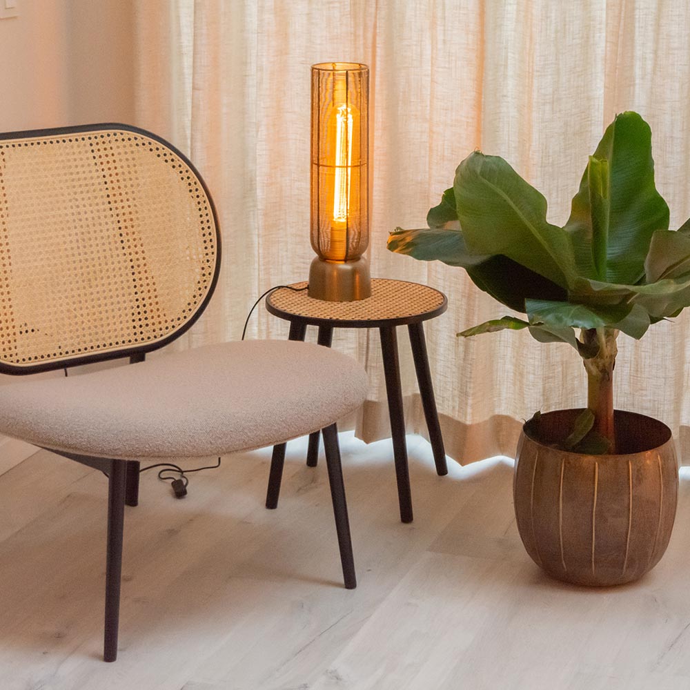 Perfect voor in een kast of op een dressoir. Deze draad tafellamp Lezuza van Light and Living is een echte sfeermaker. De draadlamp is volledig gemaakt van metaal en uitgevoerd in het antiek brons. Dit maakt de lamp prima geschikt voor diverse woonstijlen als landelijk, Scandinavisch of trendy. De cilinder vormige tafellamp is voorzien van een zwart snoer met een lengte van 180 cm, de schakelaar bevindt zich op 85 cm in het snoer. Tafellamp Lezuza wordt geleverd zonder lichtbron (E27).
