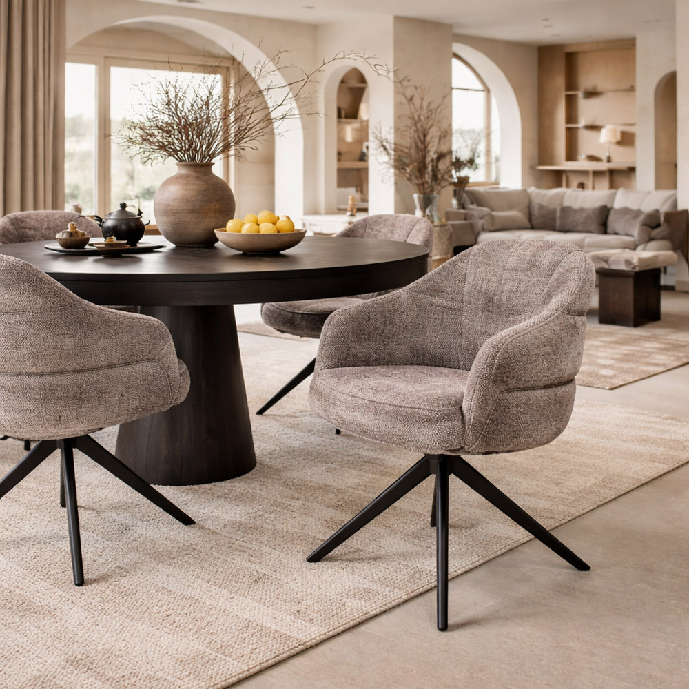 Draaibare eetkamerstoel Bella clay met armleuningen en auto-return