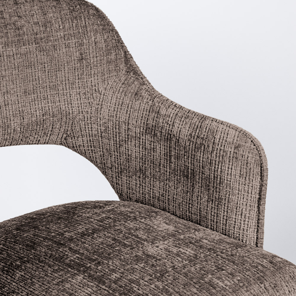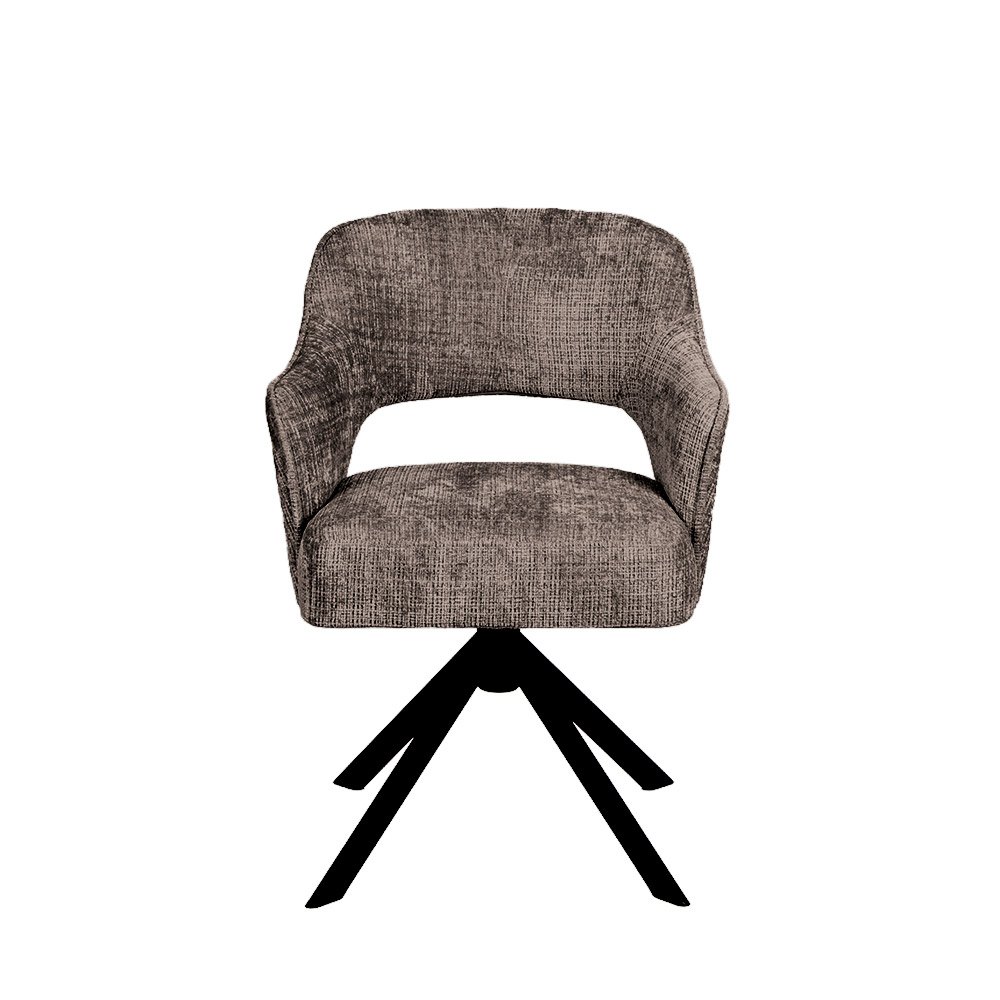 De Marbella draaistoel combineert modern design met heerlijk zitcomfort. De zachte Texarm-stof geeft de stoel een warme, rijke uitstraling, terwijl de gebogen rugleuning en geïntegreerde armsteunen zorgen voor een comfortabele zit. Dankzij het draaimechanisme is de stoel ideaal aan de eettafel: instappen gaat soepel en je schuift gemakkelijk aan zonder de stoel te hoeven verplaatsen.