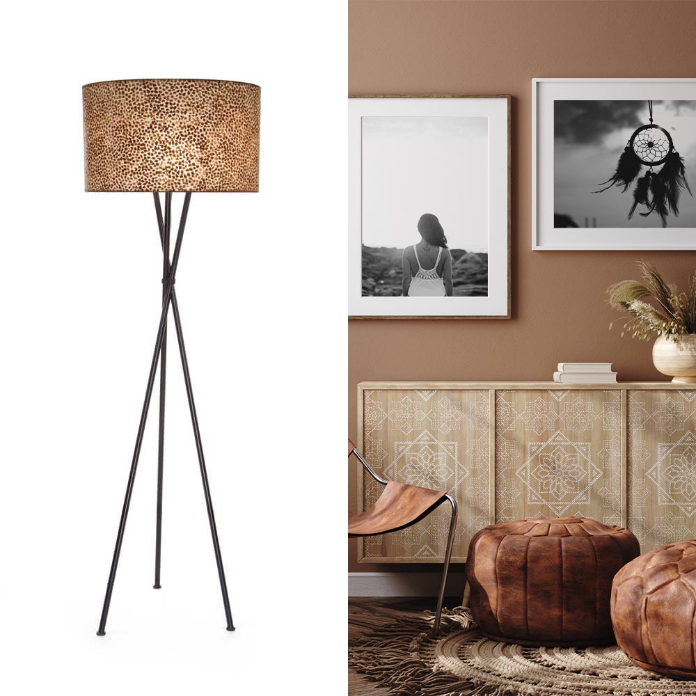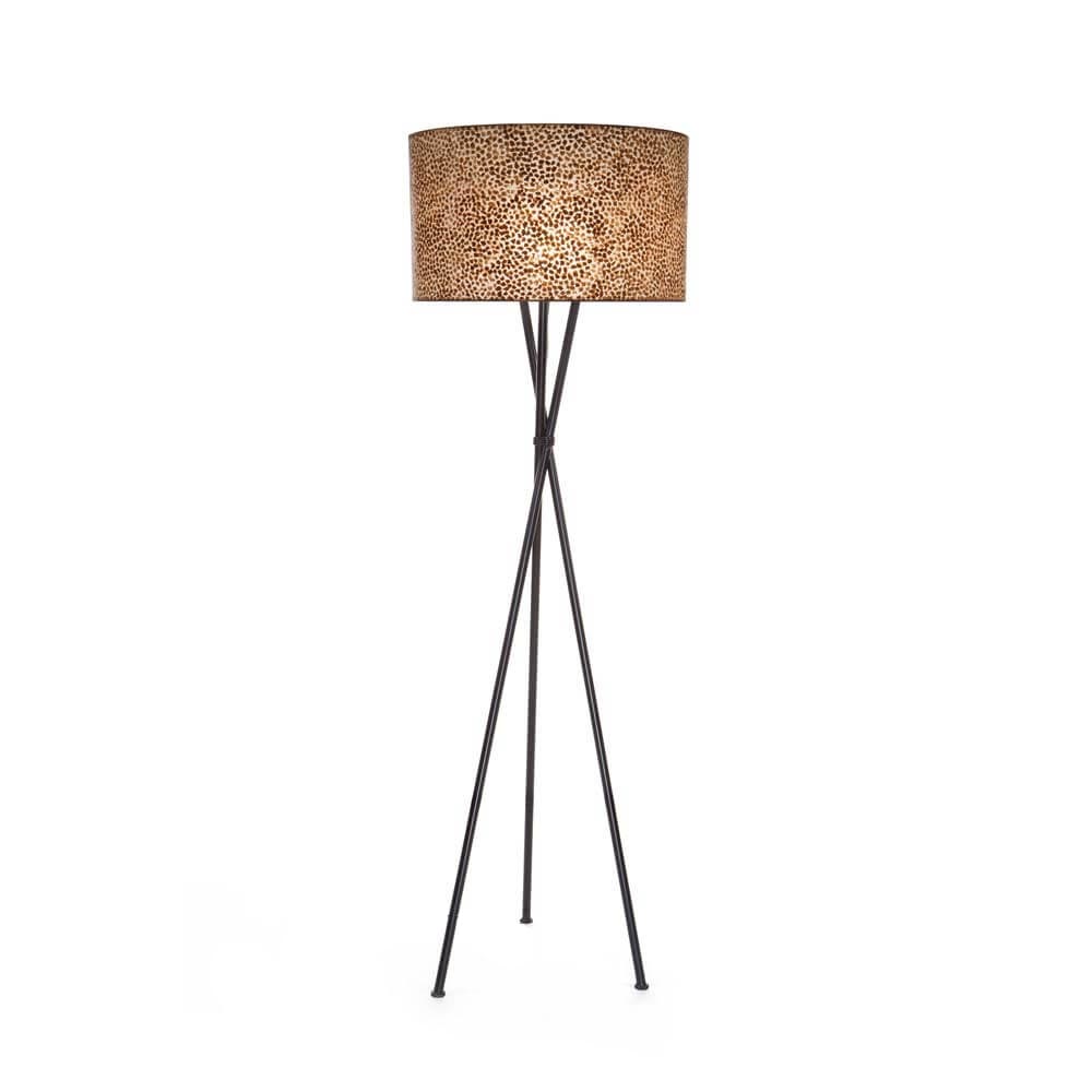 Driepoot schelpen vloerlamp zwart met bruin en goud