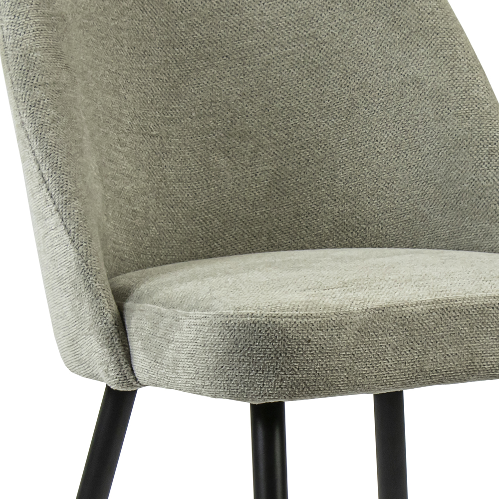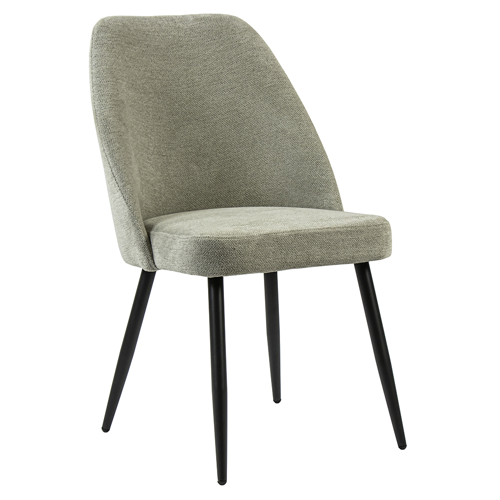 Deze fijne eetkamerstoel met hoge rugleuning biedt een goed comfort tijdens het dineren. De stoel heeft een stoffen zittng in de kleur grijs en is voorzien van smalle metalen pootjes in het zwart.