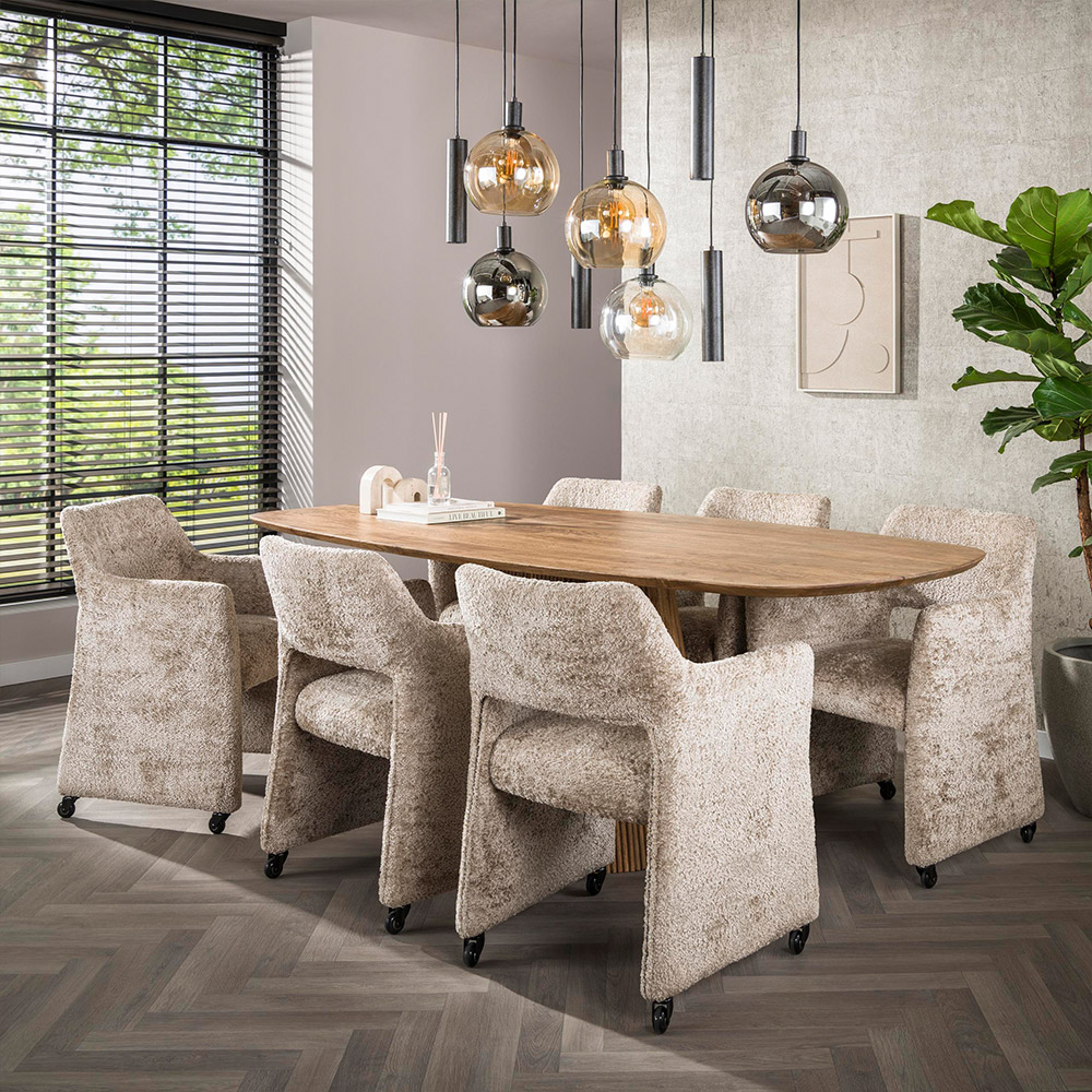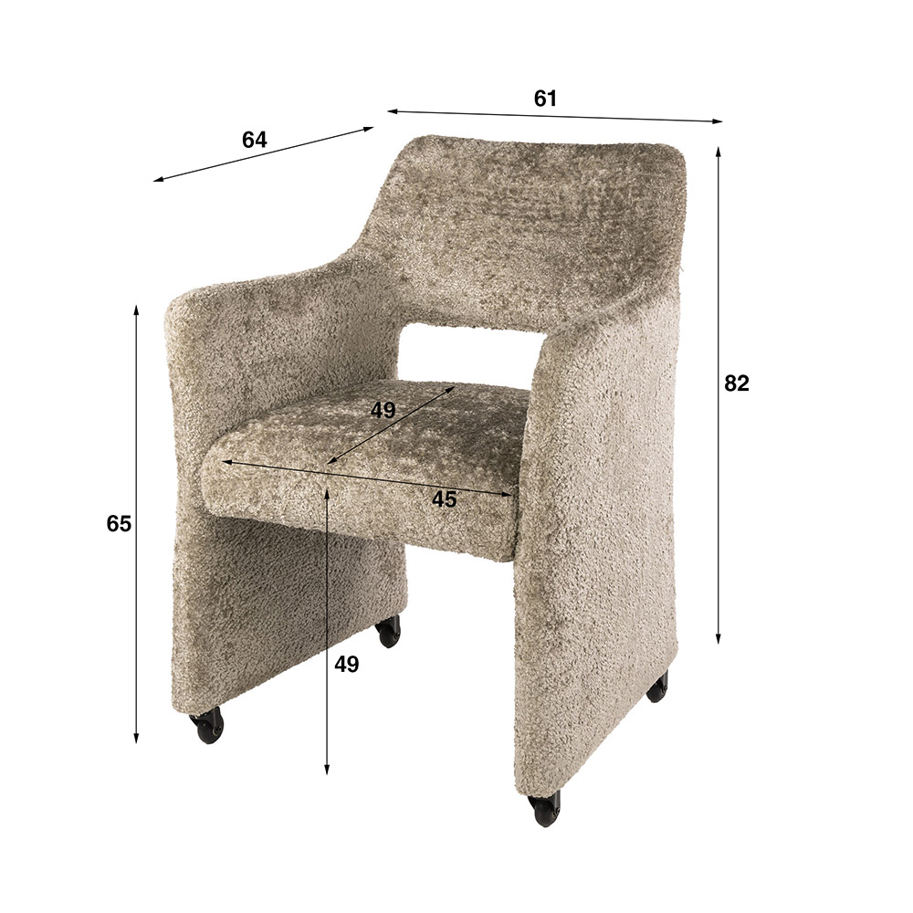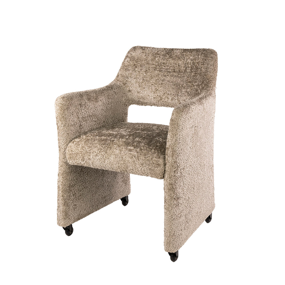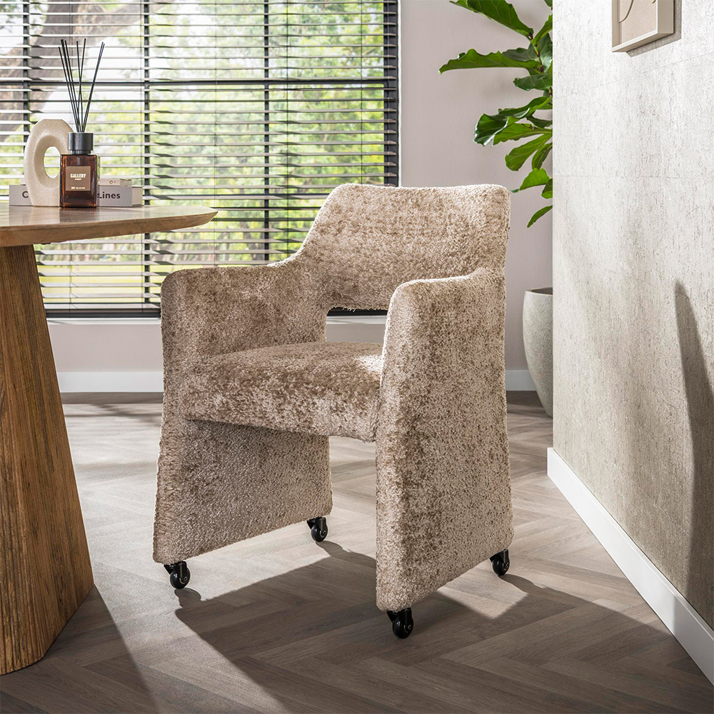 eetkamerstoel met armsteun en wieltjes in zand