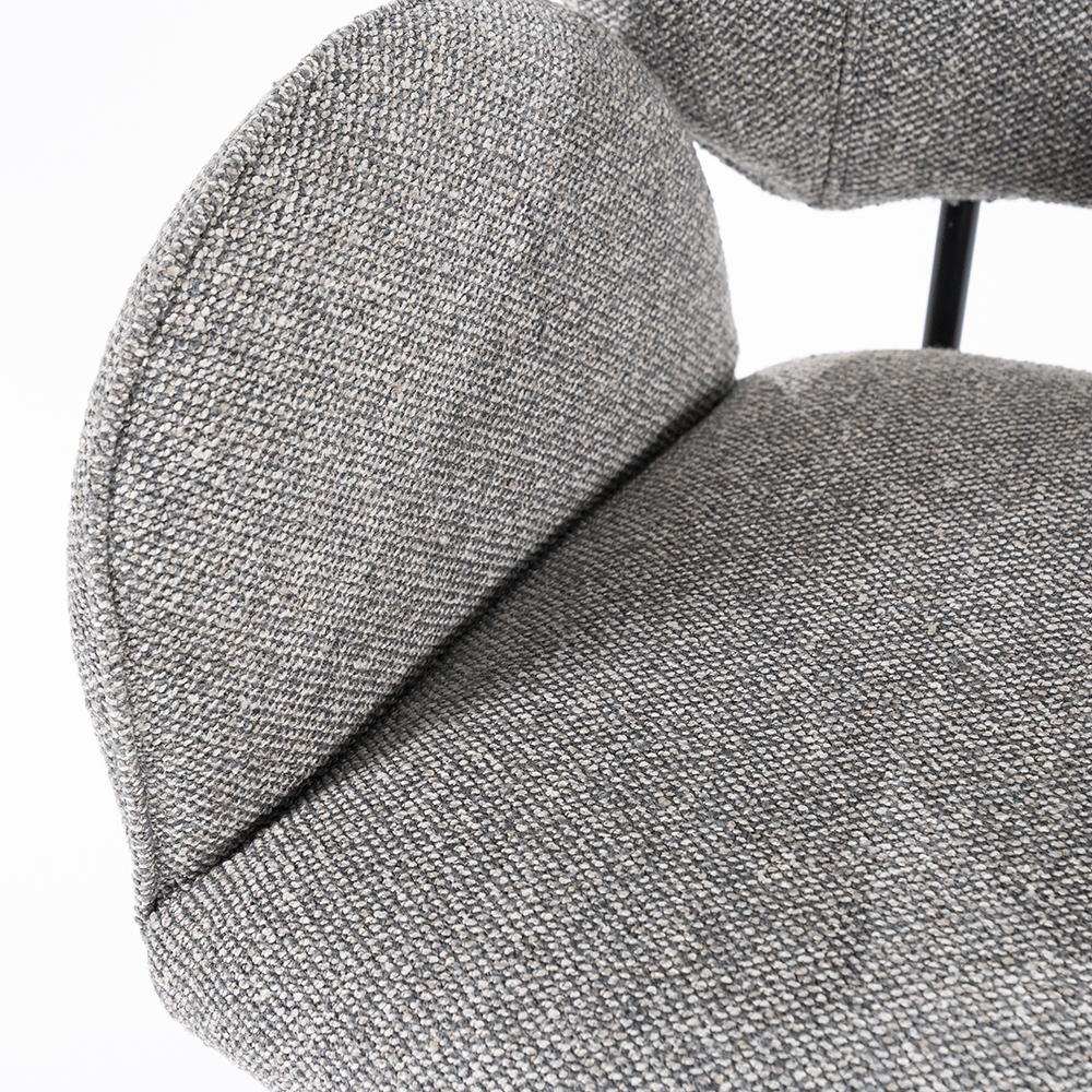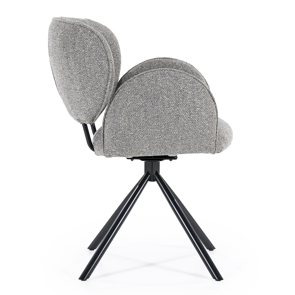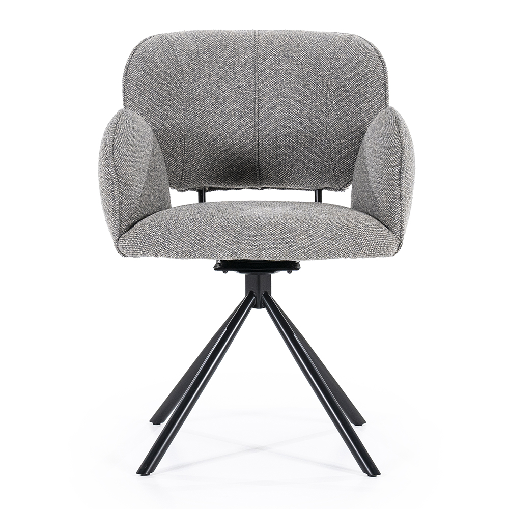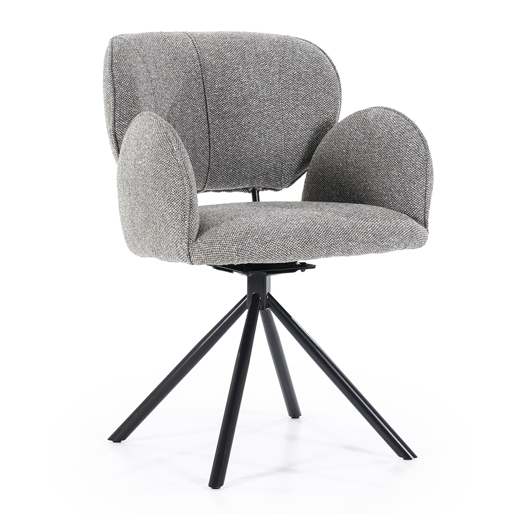 Deze trendy eetkamerstoel zorgt voor een fijn comfort tijdens het dineren. De stoel is draaibaar en is voorzien van een return-system zodat de stoel automatisch weer terugdraait. De armstoel heeft een stoffen zitting die is uitgevoerd in het bruin. Dit is verder mooi gecombineerd met chique zwarte poten.