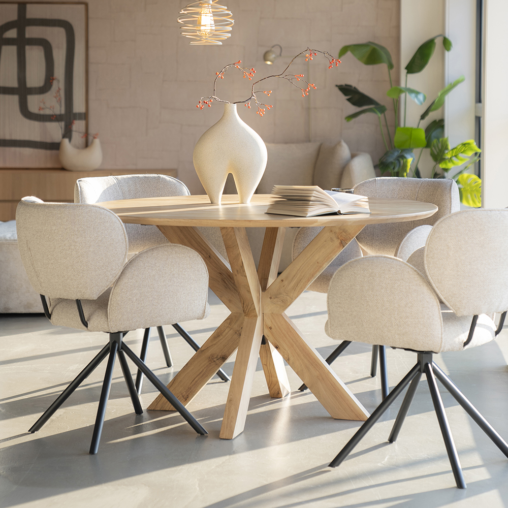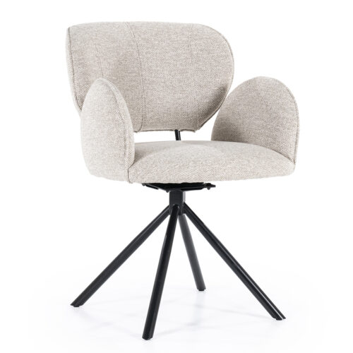 Deze trendy eetkamerstoel zorgt voor een fijn comfort tijdens het dineren. De stoel is draaibaar en is voorzien van een return-system zodat de stoel automatisch weer terugdraait. De armstoel heeft een stoffen zitting die is uitgevoerd in het taupe. Dit is verder mooi gecombineerd met chique zwarte poten.