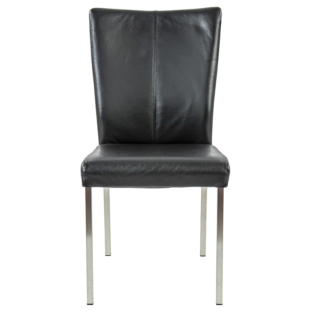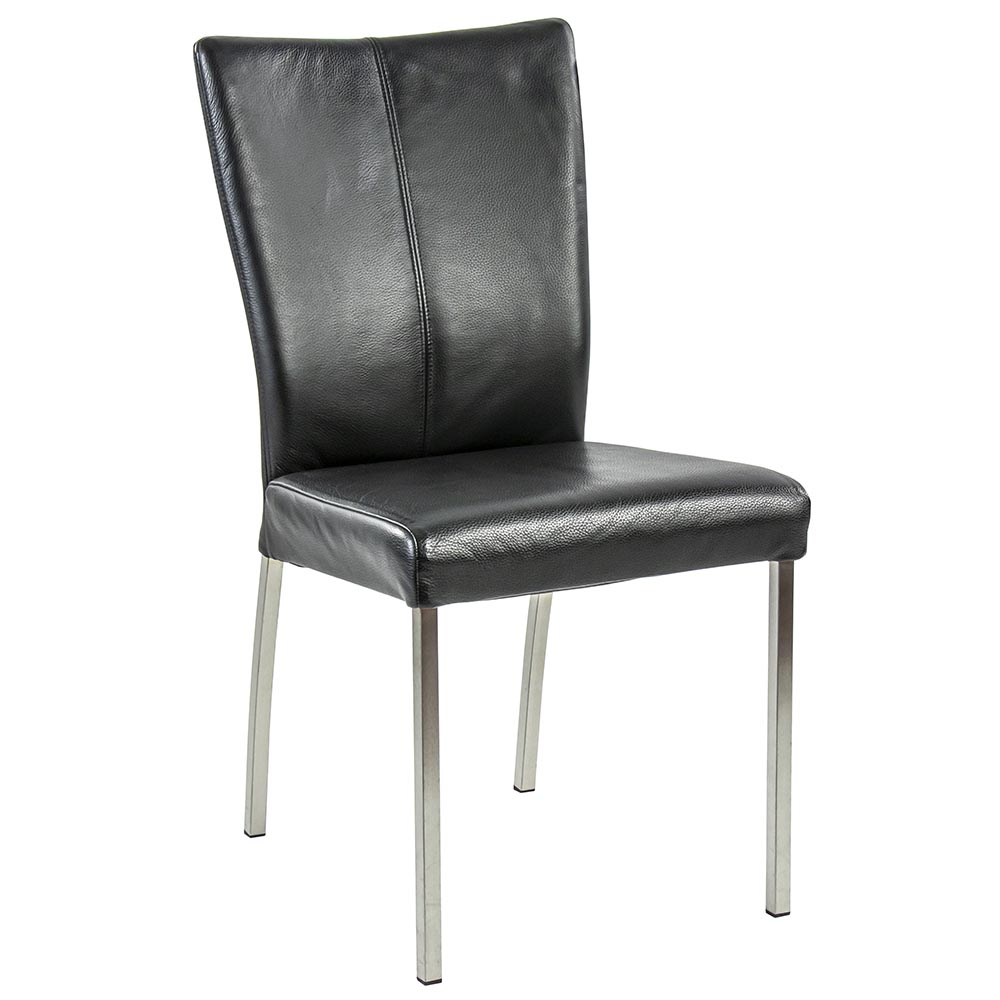 Homepagina / Wonen / Eetkamerstoelen / Eetkamerstoel zwart lederen zitting met RVS poten