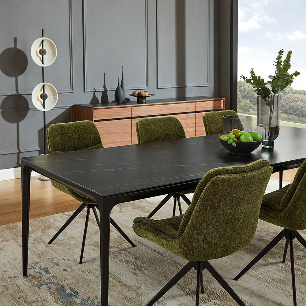 Waarom kiezen voor deze eettafel? • Keuze uit 3 luxe kleurvarianten • Sterk en onderhoudsvriendelijk keramisch blad • Elegante, slanke vormgeving • Ideaal voor 6 tot 8 personen • Tijdloos design met moderne uitstraling