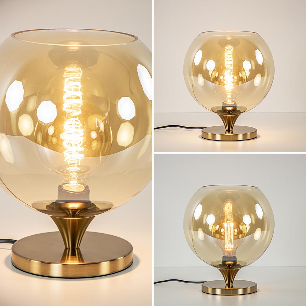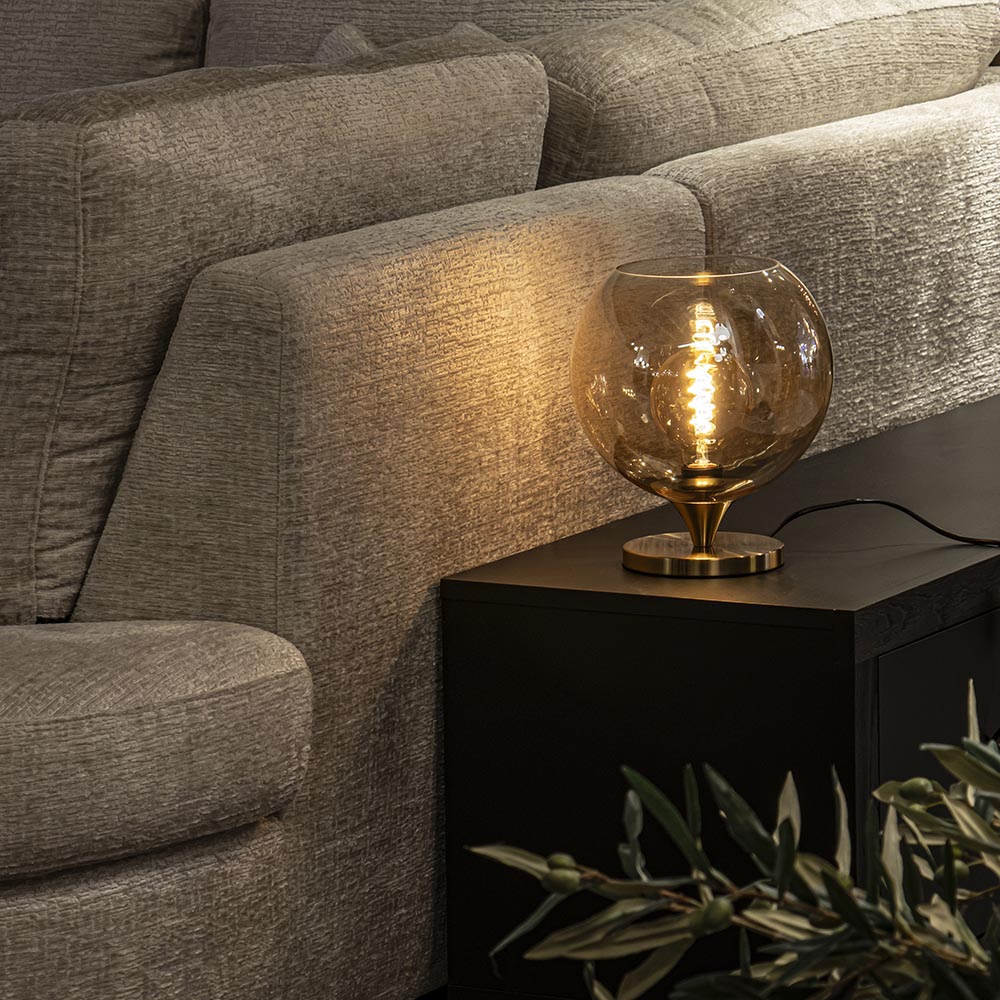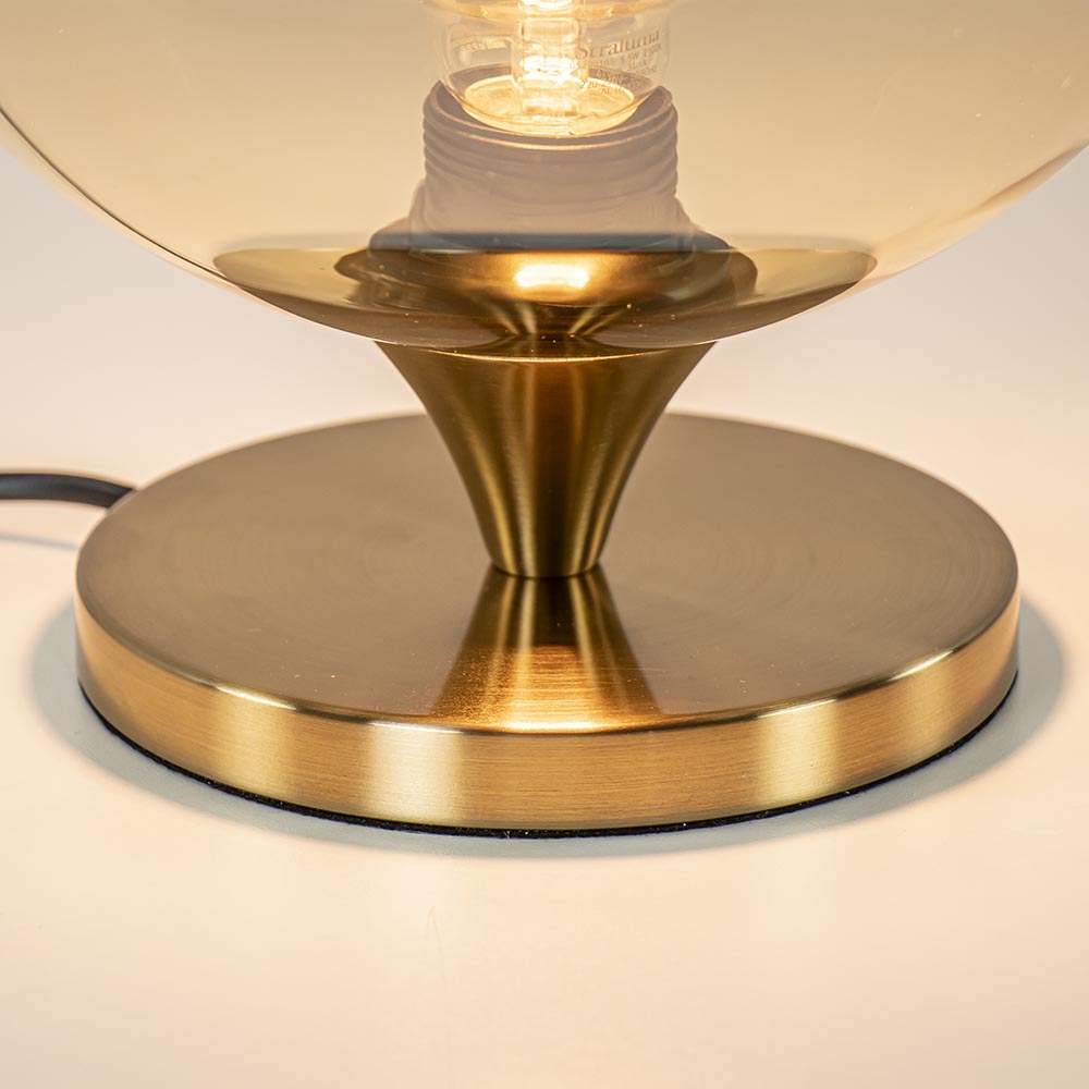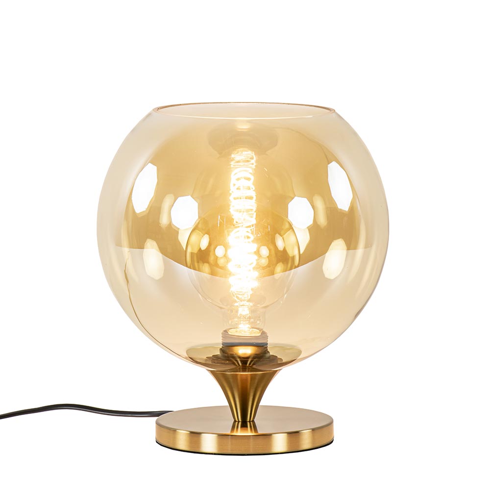 Elegante tafellamp donker goud met amber glazen bol 25 cm