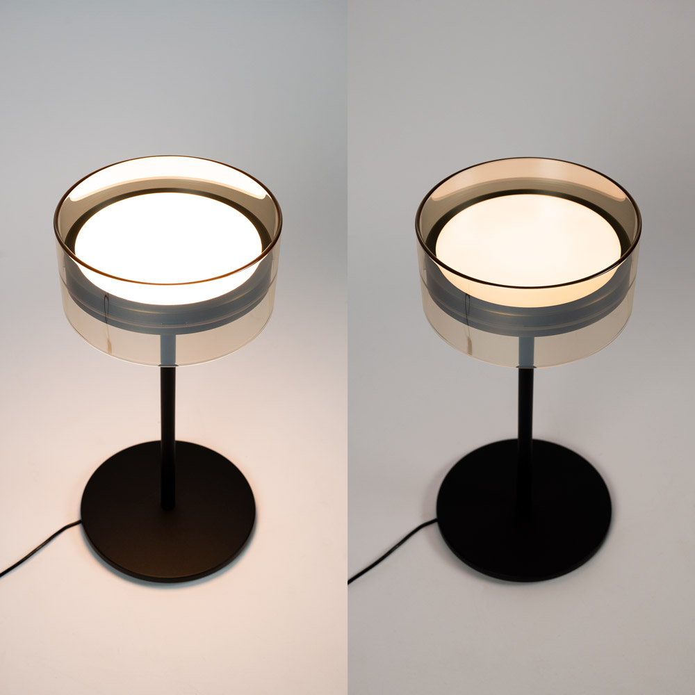 Wat deze lampen bijzonder maakt, is het boven- en onderlicht. Dit creëert een mooi gelaagd lichteffect: functioneel licht naar beneden en zacht indirect licht naar boven. Ideaal als tafellamp op een dressoir of nachtkastje, en als vloerlamp naast de bank of fauteuil. Dankzij de traploze dimfunctie stel je de lichtintensiteit eenvoudig af naar elke situatie — van helder functioneel licht tot een warme, gezellige sfeer.