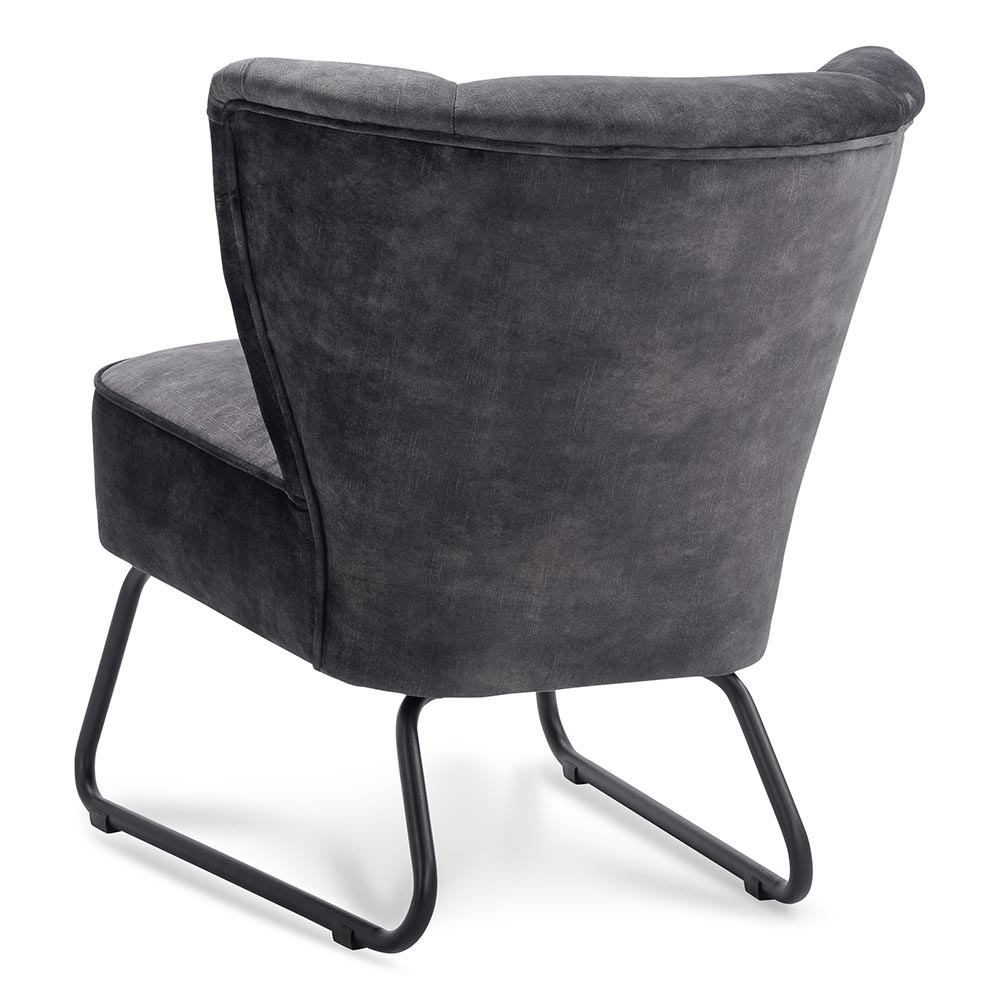 Dit trendy fauteuil maakt het interieur helemaal af. Chic van uitstraling, trendy van kleur. De comfortabele zitting is uitgevoerd in stof in velvet antraciet. De brede rugleuning biedt een fijne ondersteuning waardoor relaxen of een boek lezen geen enkel probleem is. De stoel staat op zwart metalen sleepoten.