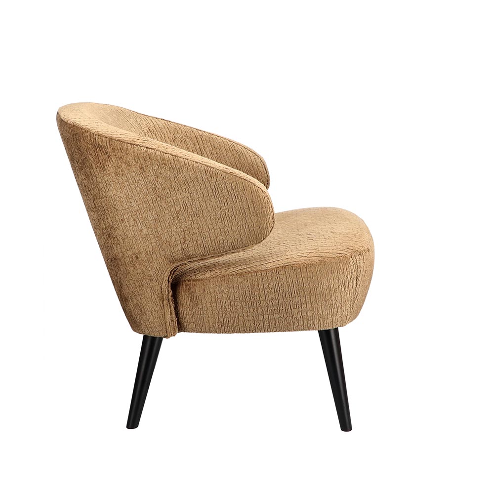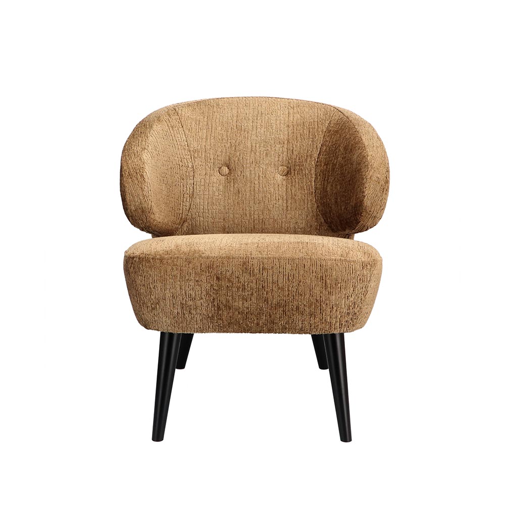 Dit bruin kleurige fauteuiltje fleurt het interieur helemaal op. De warme kleur is een echte eyecatcher in de woning en maakt de zitkamer echt compleet. De zitting is gemaakt van stof en uitgevoerd in de kleur brandy. Dit is gecombineerd met houten pootjes in het mat zwart. De leuning loopt wat breder uit zodat deze ook als armleuning fungeert. Ideaal om heerlijk in te relaxen.