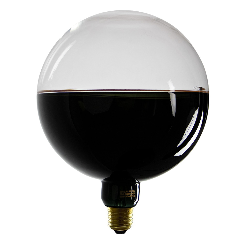 – E27 – 5,8W – 240 lumen – 1900 Kelvin – Helder & Zwart glas – Dimbaar – Afm: Ø18,8cm