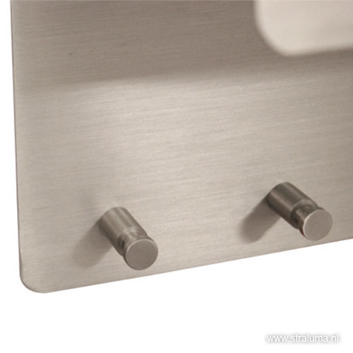 Praktische multifunctionele kapstok van het merk Mioni. Deze kapstok heeft 9 haken en is voorzien van een hoedenplank. De hoedenplank en achterwand zijn uit 1 stuk RVS vervaardigd. De hoek en de ‘luifel’ zijn mooi gebogen. Zo krijgt de strakke, moderne kapstok zijn karakter. Deze plank zorgt ervoor dat dit een ideale plek is om uw sleutels, handschoenen, sjaals of andere zaken te bewaren. Ondanks de 9 haken is de kapstok niet groot waardoor hij al snel in een kleine ruimte zoals de hal/gang past.