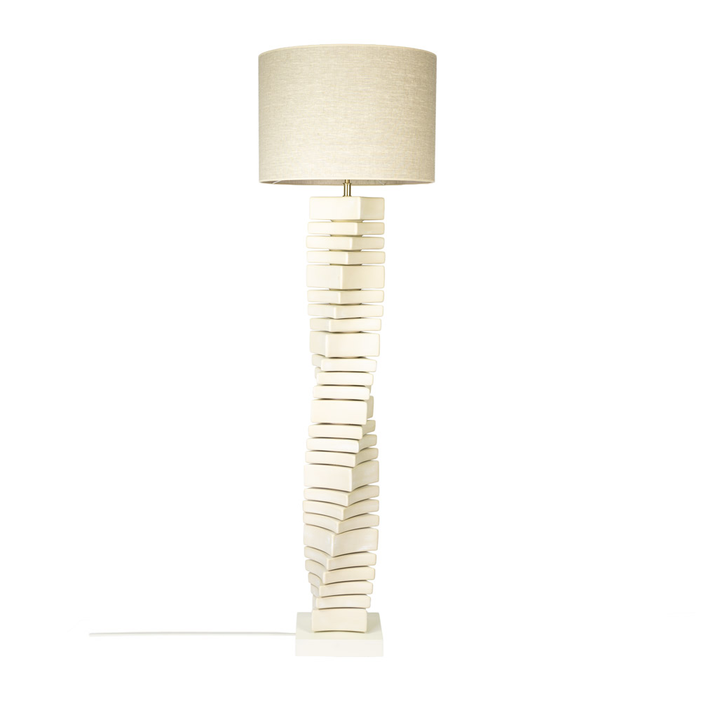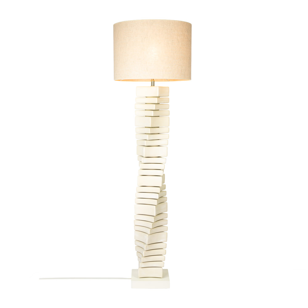 Homepagina / Lampen / Schemerlampen / Gedraaide keramische vloerlamp in gebroken wit met stoffen kap