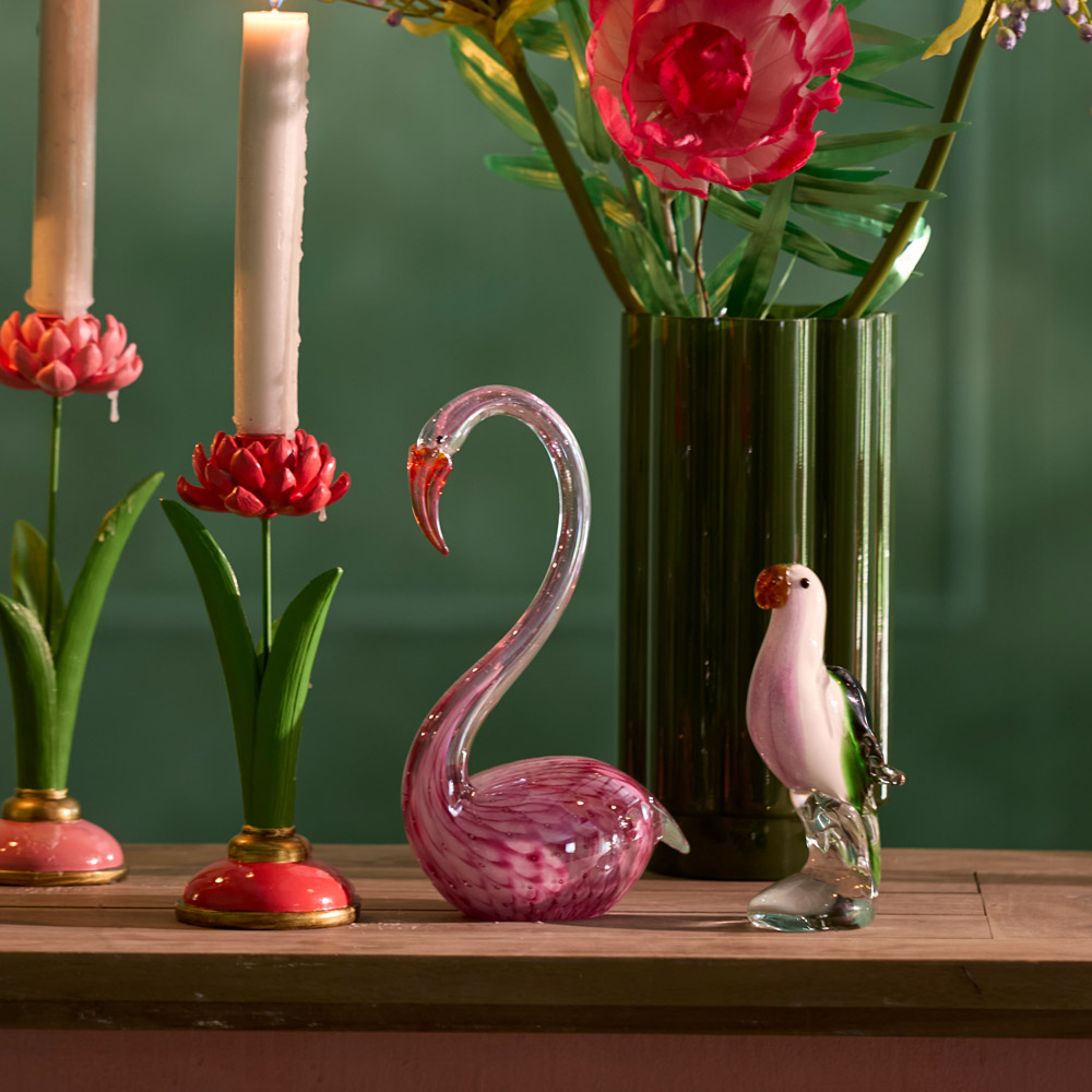 Dit glazen beeldje van een zwaan in zacht roze is een subtiele eyecatcher in ieder interieur. De sierlijke hals en vloeiende lijnen geven het ornament een elegante uitstraling, terwijl de frisse kleur zorgt voor een speels en eigentijds accent.