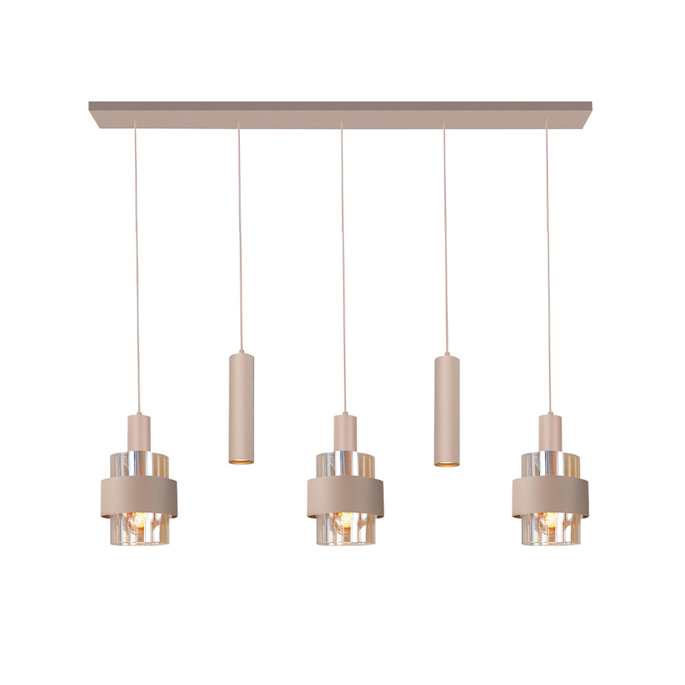 Marrone 5-lichts hanglamp – zand / taupe – balk – 3x E27 + 2x GU10