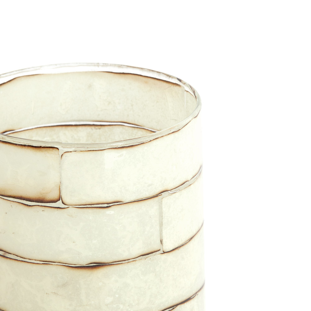 Droneri glazen theelichthouder – transparant glas met crème – Ø10 × H13 cm