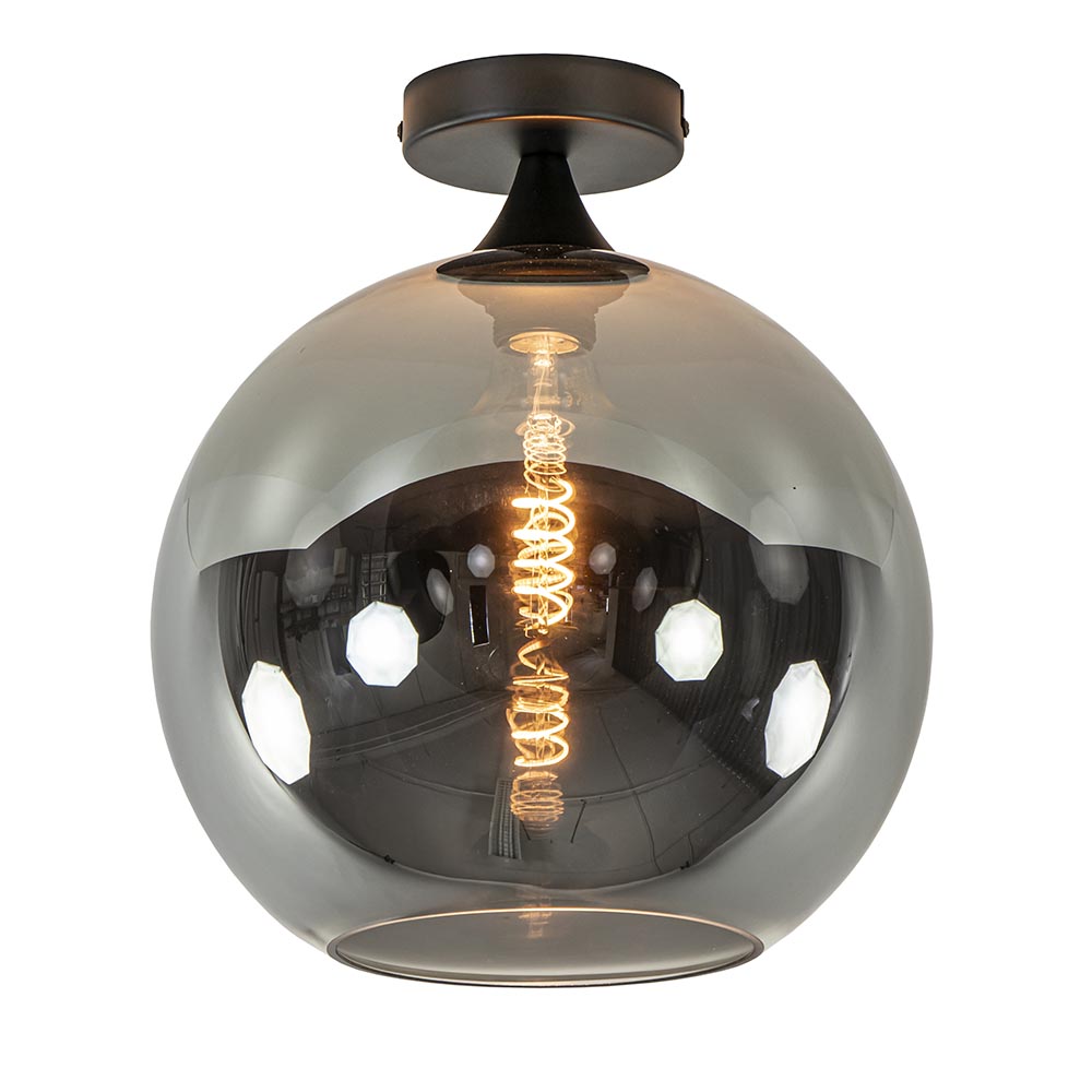 Homepagina / Lampen / Plafondlampen / Globe plafondlamp zwart met smoke/titanium glas 30 cm