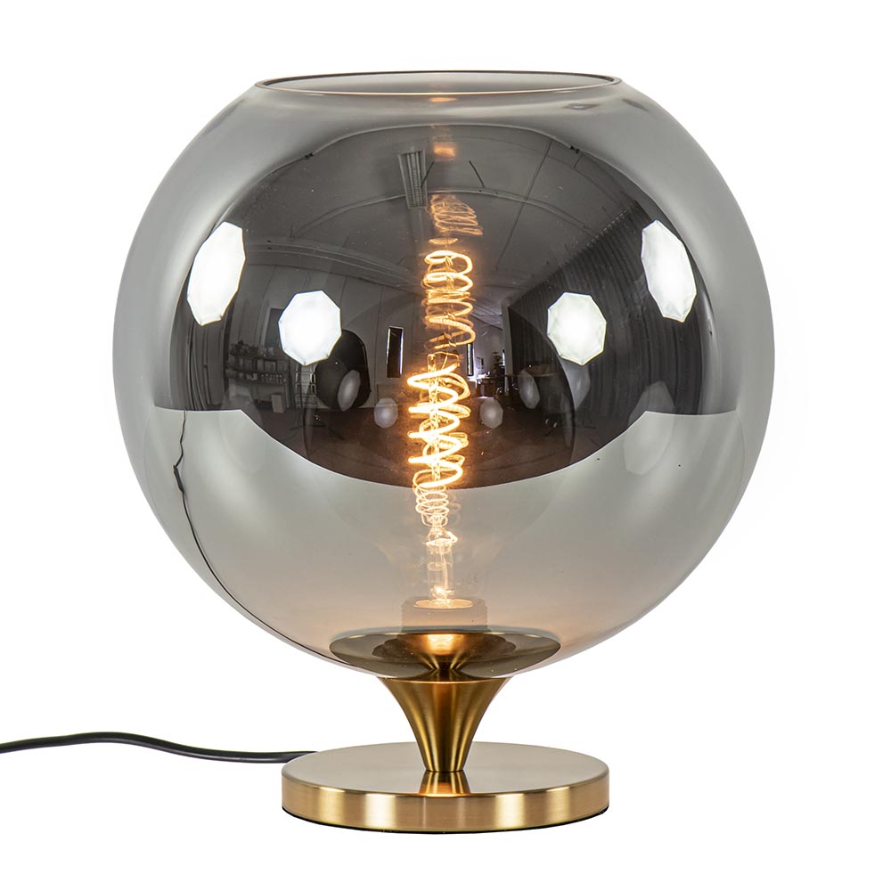 / Lampen / Tafellampen / Globe tafellamp smoke/titanium met gouden voet
