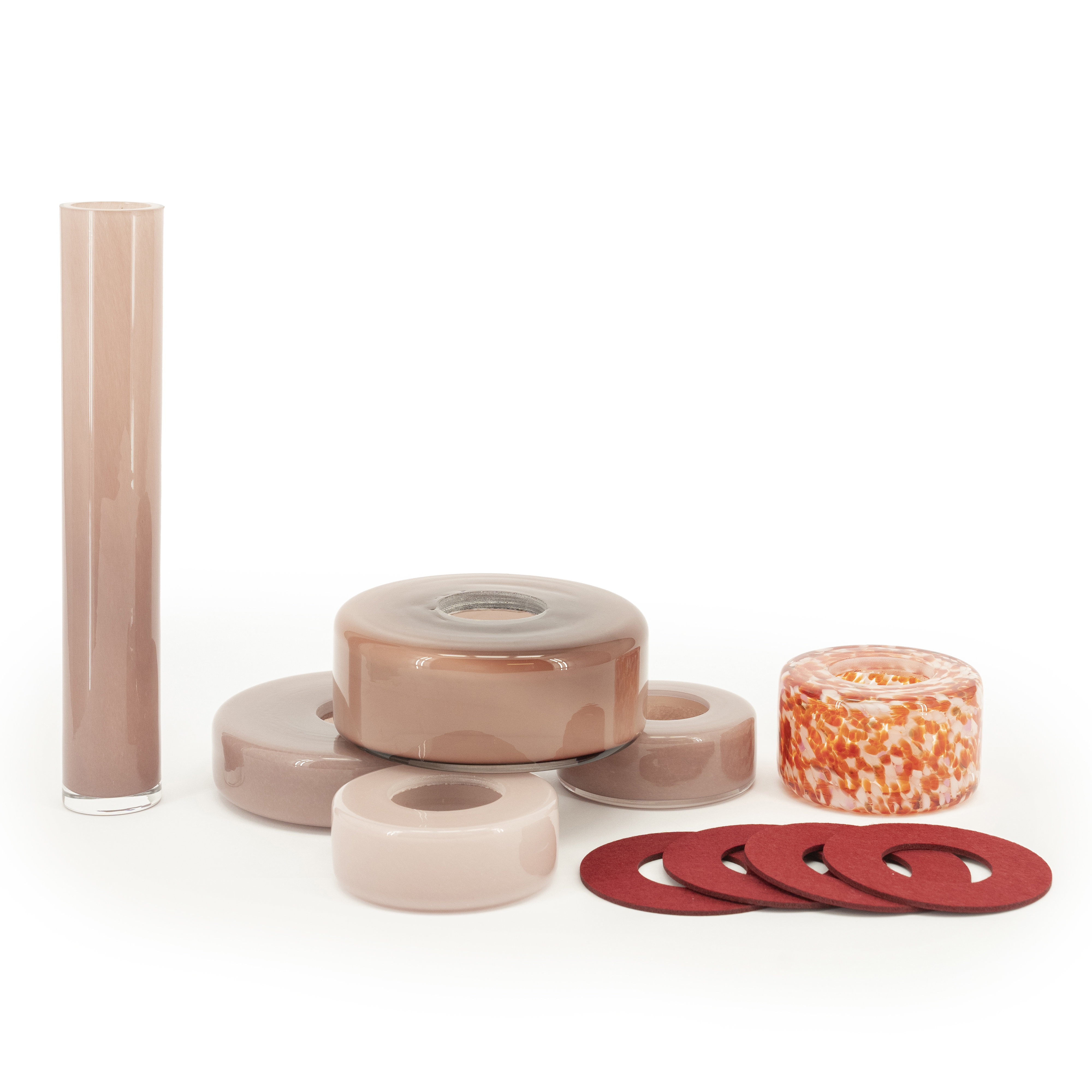 Specificaties: ⠀⠀⠀⠀• Afmetingen: 17 x 29 x 32 cm (lxbxh, totale stapeling) ⠀⠀⠀⠀• Kleur: Roze, oranje gespikkeld, transparant rood ⠀⠀⠀⠀• Materiaal: Mondgeblazen glas ⠀⠀⠀⠀• Vorm: Stapelbaar object, modulair op te bouwen ⠀⠀⠀⠀• Gebruik: Decoratief – niet geschikt als vaas of voor gebruik met water
