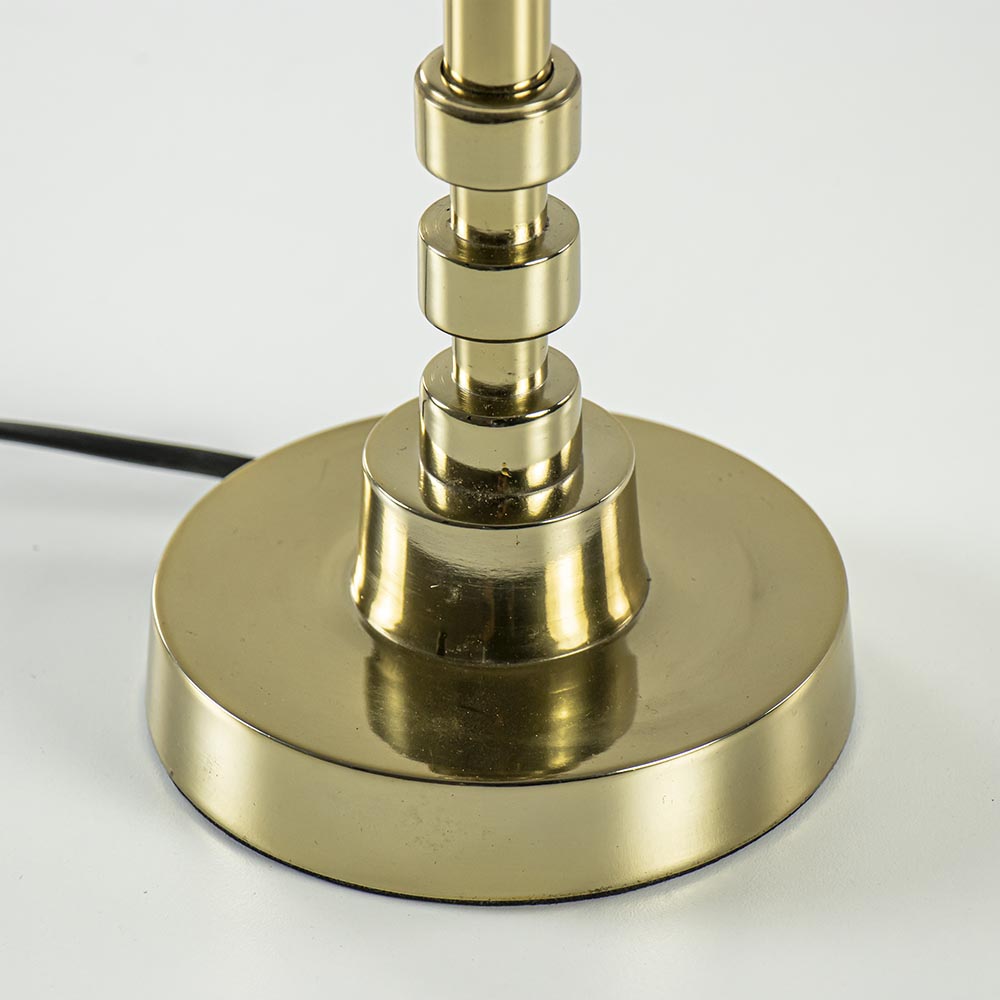 Deze trendy lampvoet voldoet helemaal aan de huidige trends. Goud is een mooie accentkleur en combineert met diverse kleuren en stijlen. Deze moderne lampvoet sluit hier helemaal bij aan. De tafellamp is gemaakt van metaal en is uitgevoerd in een glimmende gouden kleur. De lampvoet is prima te combineren met verschillende kappen. De tafellamp heeft een snoer van 140 CM met de schakelaar op 45 CM van het armatuur. De lamp wordt exclusief kap en lichtbron (E27) geleverd.