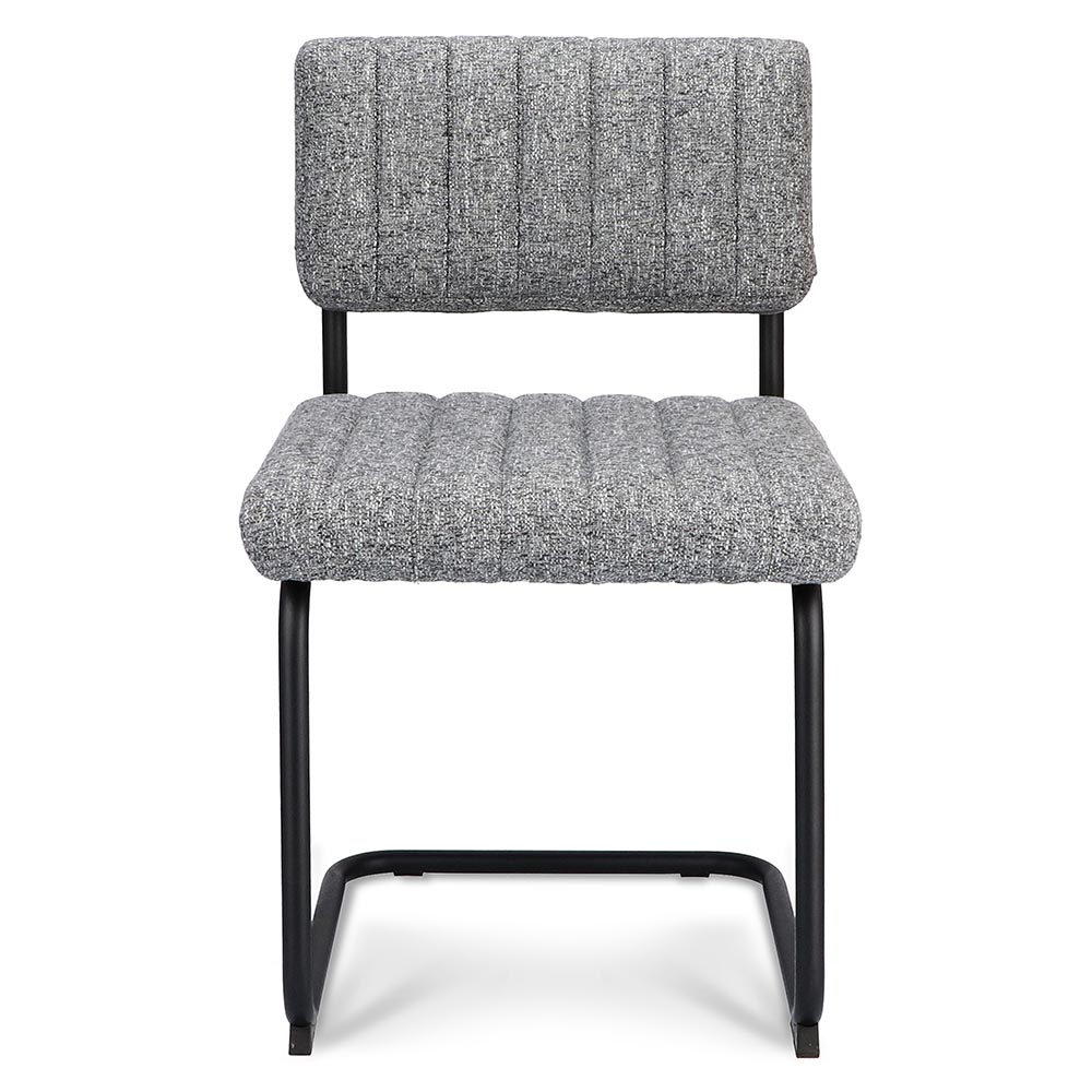 Trendy, stoer en comfortabel ineen. Deze eetkamerstoel in voorzien van een stoffen zitten en rugleuning, beide uitgevoerd in de kleur grijs. Dit is mooi gecombineerd met een stoer en stevig metalen frame. De stoel heeft een comfortabele zit en is door het gewicht van 7,25 kg gemakkelijk te verplaatsen.
