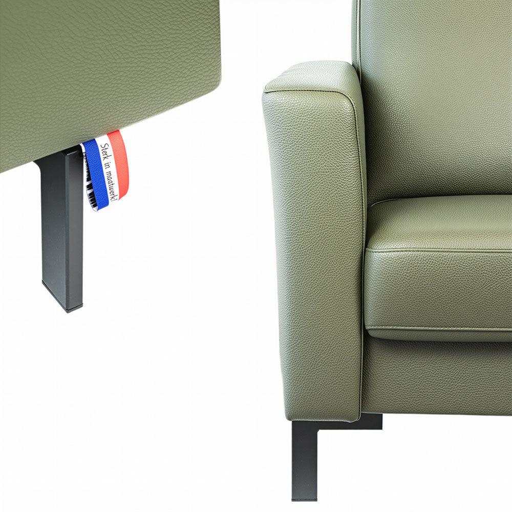 • Model: Jade • Stof: Supreme BS 30691 avocado (leer, leergroep 3) • Poot: L-vorm zwart
