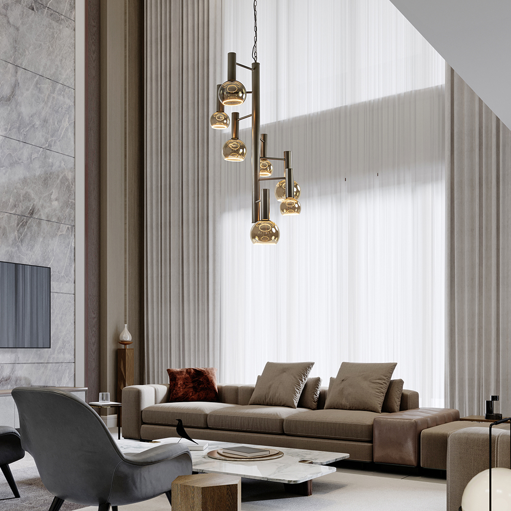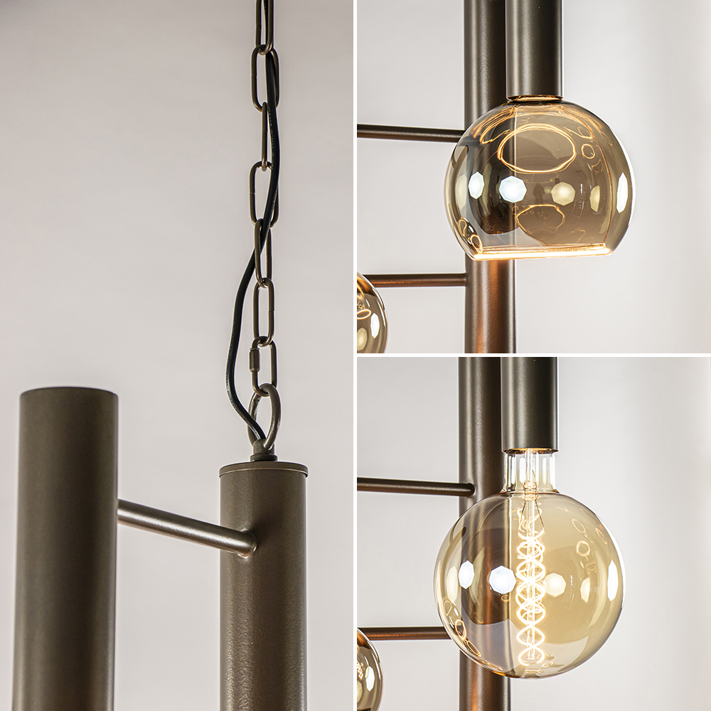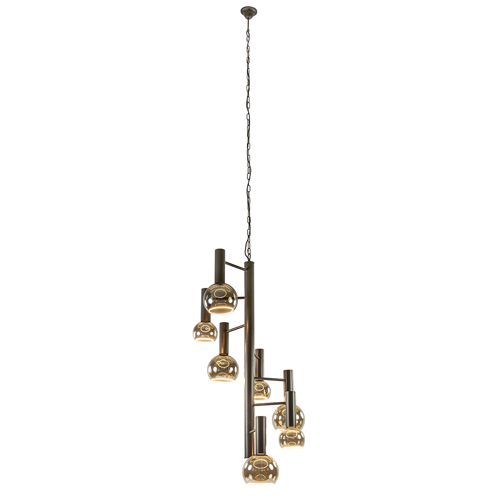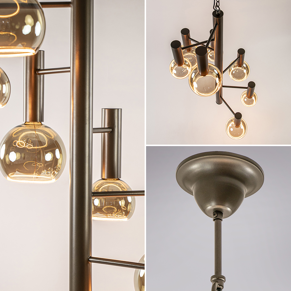 Deze prachtige hanglamp is een verrijking voor het interieur. Door de hoogte van 300 cm is de lamp mooi toe te passen in een vide of ruimte met een hoog plafond. Met deze 7-lichts hanglamp maakt u in ieder geval een mooi statement. De hanglamp heeft een metalen armatuur dat is afgewerkt met een bronzen finish. Dit geeft de hanglamp een chique en luxe uitstraling die mooi matcht in diverse woonstijlen. De 7-lichts hanglamp wordt geleverd zonder lichtbronnen en is dimbaar middels een externe dimmer.