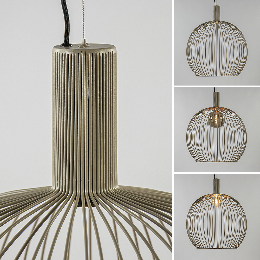 Deze trendy draad hanglamp is een mooie toevoeging aan het interieur. De ronde hanglamp is gemaakt van metaal en voorzien van een finish in de kleur mat zand. Dit geeft de lamp een trendy en Scandinavische look en feel die mooi matcht in diverse woonstijlen. De ronde draadkap hangt aan een dun staaldraad en een zwart stof omwonden snoer die beide naar wens zijn in te korten. De maximale hoogte van de lamp is 190 cm. Door de open constructie van de hanglamp bepaald de lichtbron veelal de sfeer. Kies voor de kleine spot Pucc (art: 05320014) waardoor de aandacht volledig naar de lamp gaat of een grote decoratieve lichtbron die de lamp complementeert. De draad hanglamp is dimbaar middels een externe dimmer (exclusief).