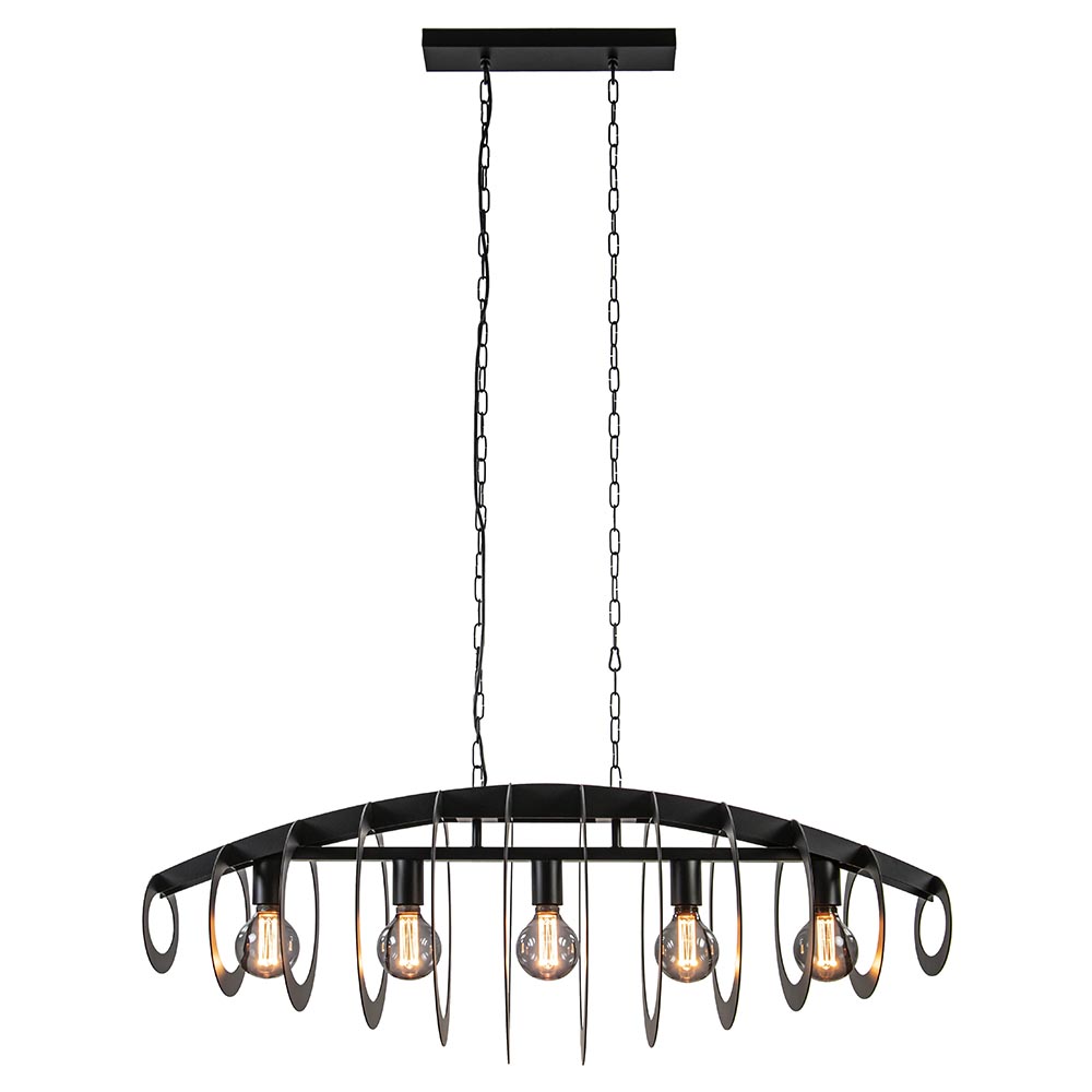 Wat een prachtige eyecatcher is dit. Mooi voor boven een ovale of rechthoekige eettafel. De hanglamp is volledig gemaakt van metaal en bestaat uit een gebogen armatuur waar de losse ovale ringen op worden geplaatst. De middelste ringen kunnen worden geplaatst door de schakel in de ketting los te maken. Door de ringen krijgt de lamp een open structuur en zorgt deze voor een fijne lichtverspreiding. Het metaal is uitgevoerd in het mat zwart wat de ovale lamp prima geschikt maakt voor diverse interieurstijlen. De mat zwarte eetafelhanglamp is dimbaar middels een externe dimmer en wordt geleverd zonder lichtbron (5x E27). Deze stoere lamp is een prachtig exemplaar en een ware verrijking voor het interieur.