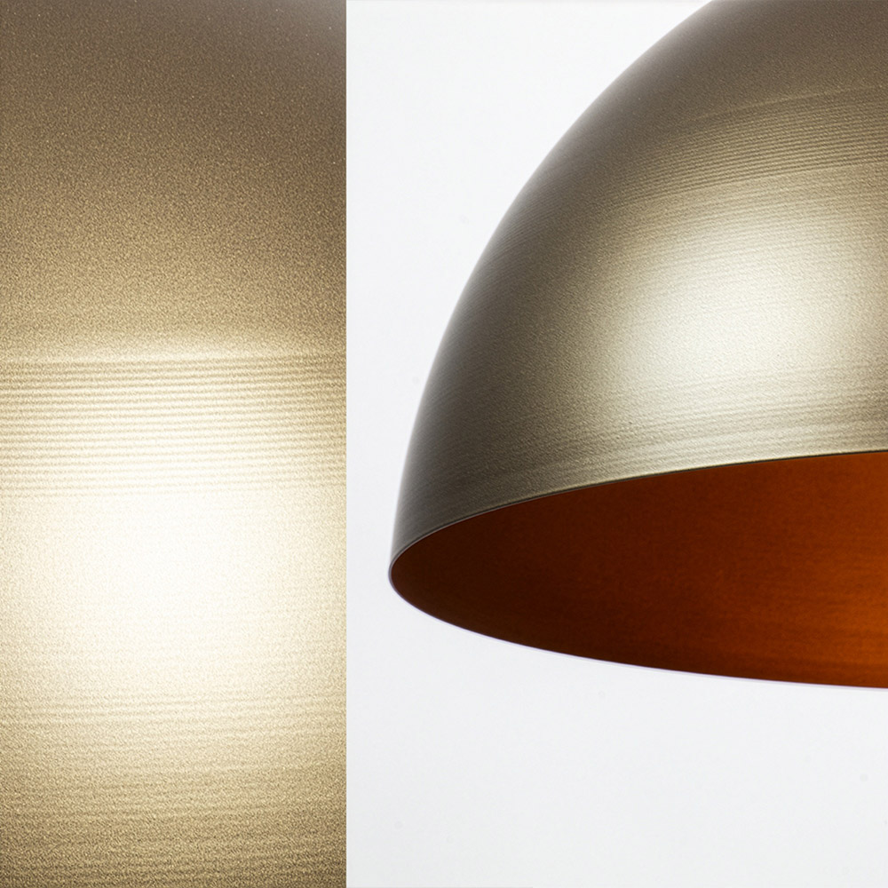 Deze serie is verkrijgbaar in zes uitvoeringen: twee kleuren (beige/zand en brons) en drie formaten (S, M en L). Hierdoor kun je de lamp exact afstemmen op de ruimte. Kies één statementlamp of combineer meerdere maten en kleuren voor een speels maar rustig geheel — bijvoorbeeld boven een lange eettafel of kookeiland.