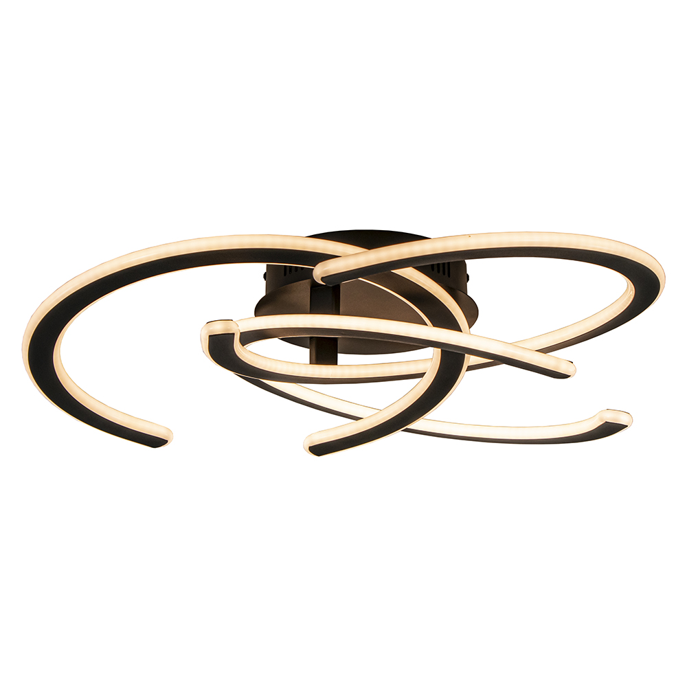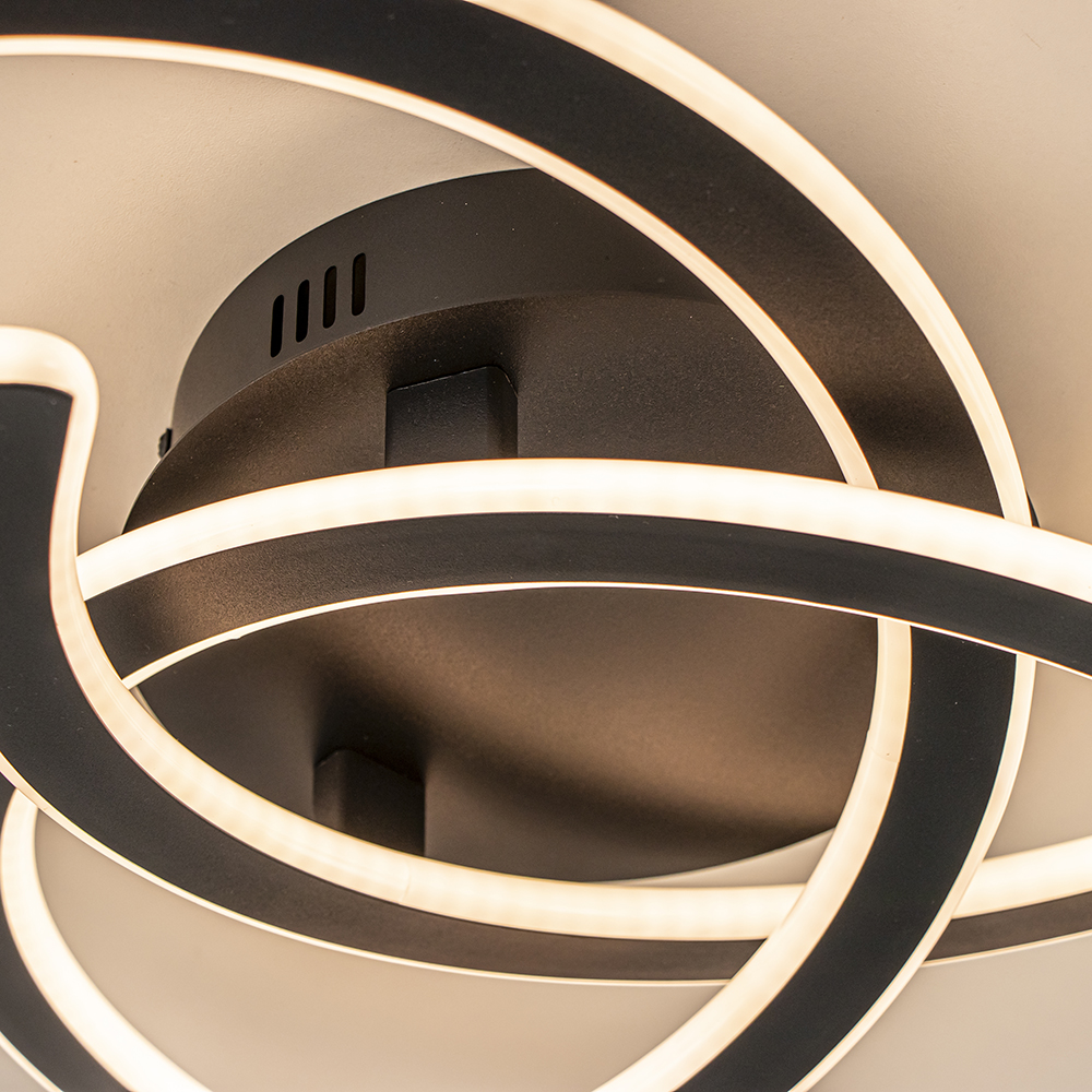 Een flinke LED plafondlamp geschikt voor diverse ruimtes zoals de woonkamer, slaapkamer, keuken of op kantoor. Buiten de decoratieve uitstraling ook nog een lamp die veel licht geeft, 2700 lumen. Het is maar goed dat de techniek het toelaat om deze zwarte plafondlamp te dimmen. Zo kunt u hem functioneel maken maar in een zachte stand ook heel sfeervol. Let wel, de dimmer zit niet bij de plafonniere, deze heeft u of reeds zelf aan de wand of u heeft een schakelaar die u kunt vervangen voor een dimmer.
