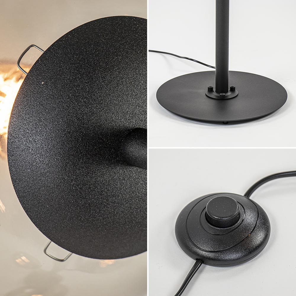 – hoogte: 172 cm – voet: Ø32,5×1,5 cm – smoke glas: Ø20 cm – metaal, zwart – zwart snoer: 220 cm – exclusief lichtbron (6x E27)